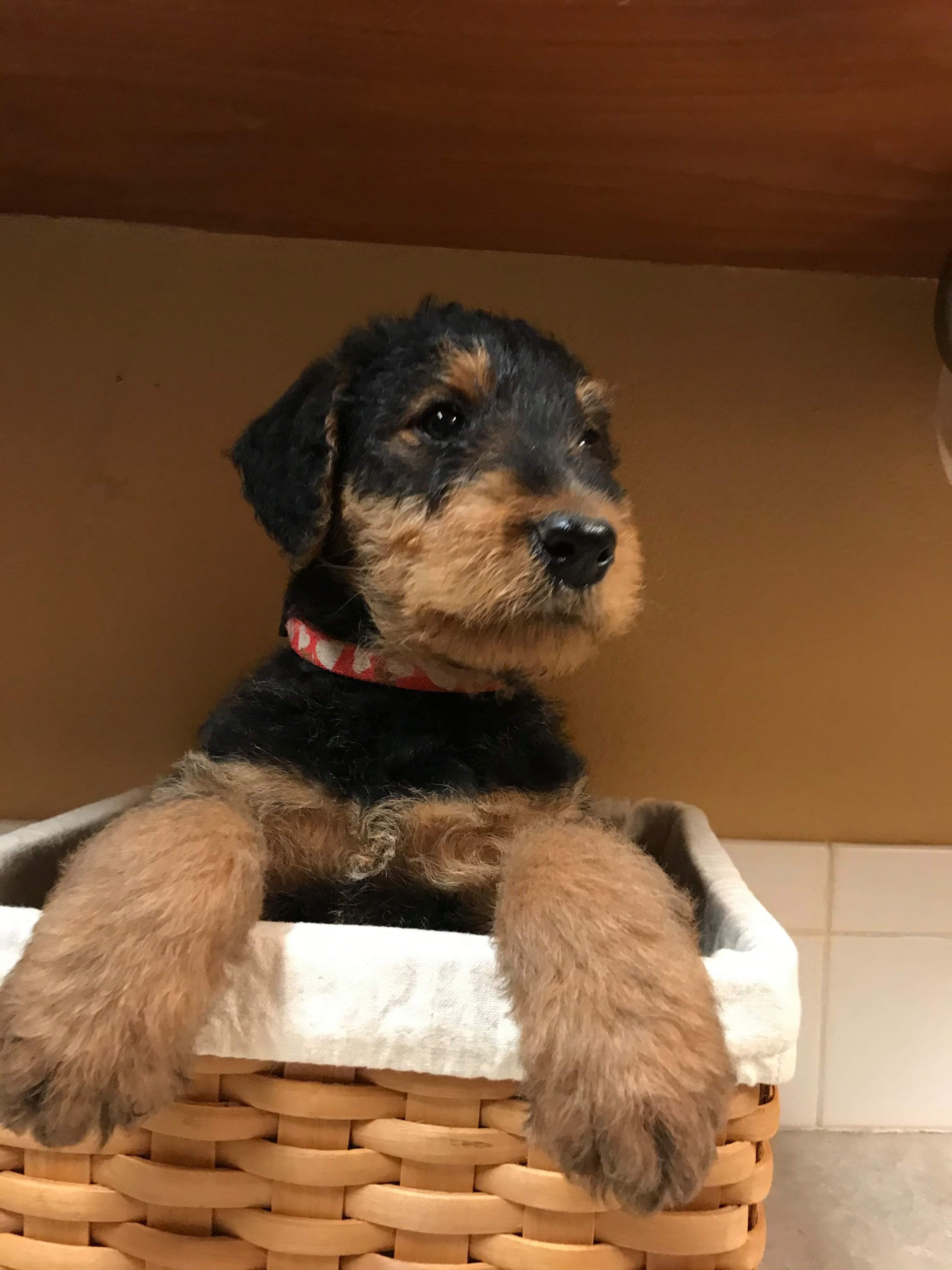 Most Airedale Terrier puppies in Fayetteville, AR will be moderate energy. As Airedale Terrier puppies in Fayetteville, AR may be moderate energy energy, they may benefit from around 30 - 60 minutes of exercise every day.