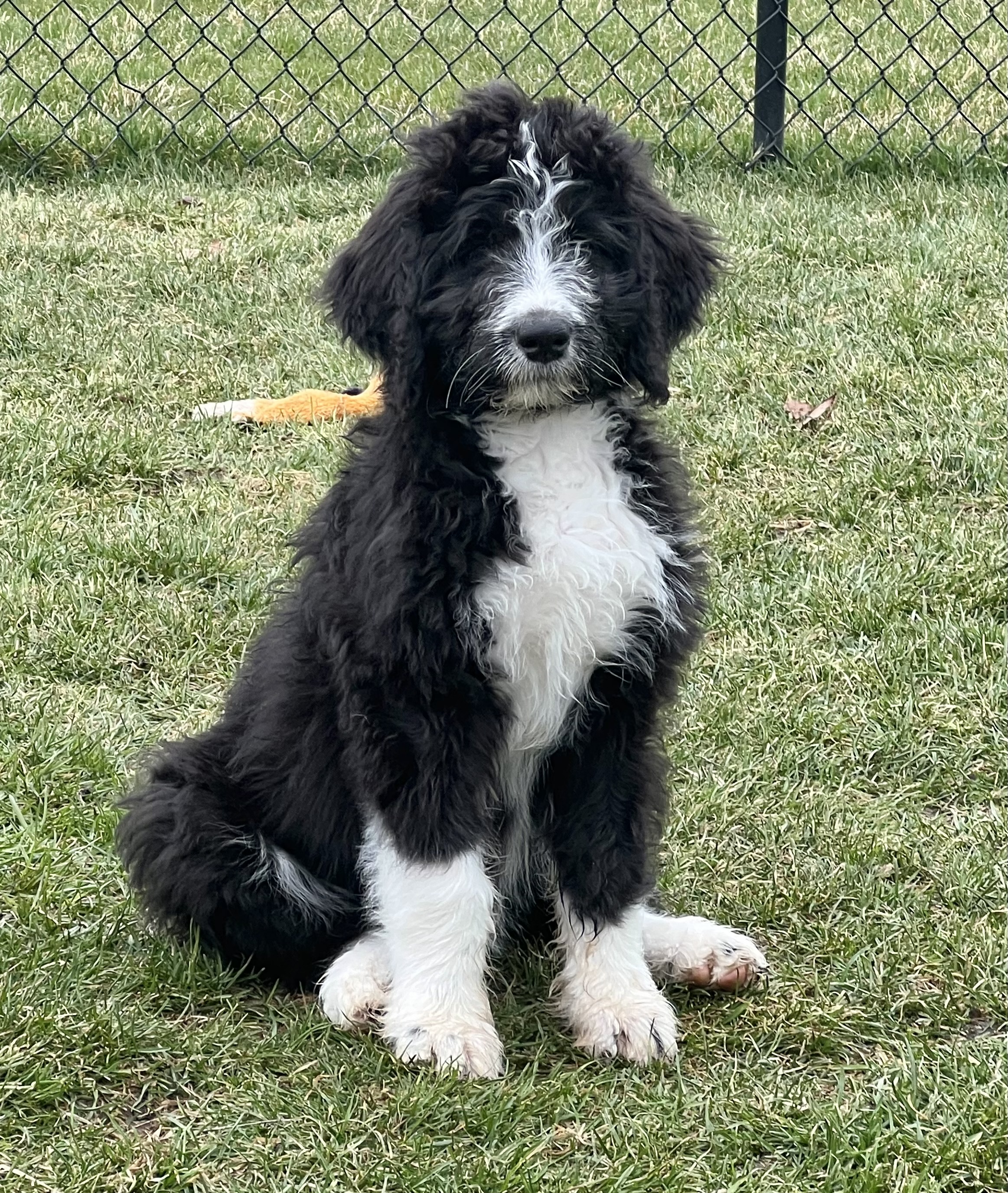 Bernedoodle puppies in Canton, MI tend to have moderate energy. Typically, dogs with a moderate energy level may require around 30 to 60 minutes per day of physical activity, though individual dogs may fall outside that range.