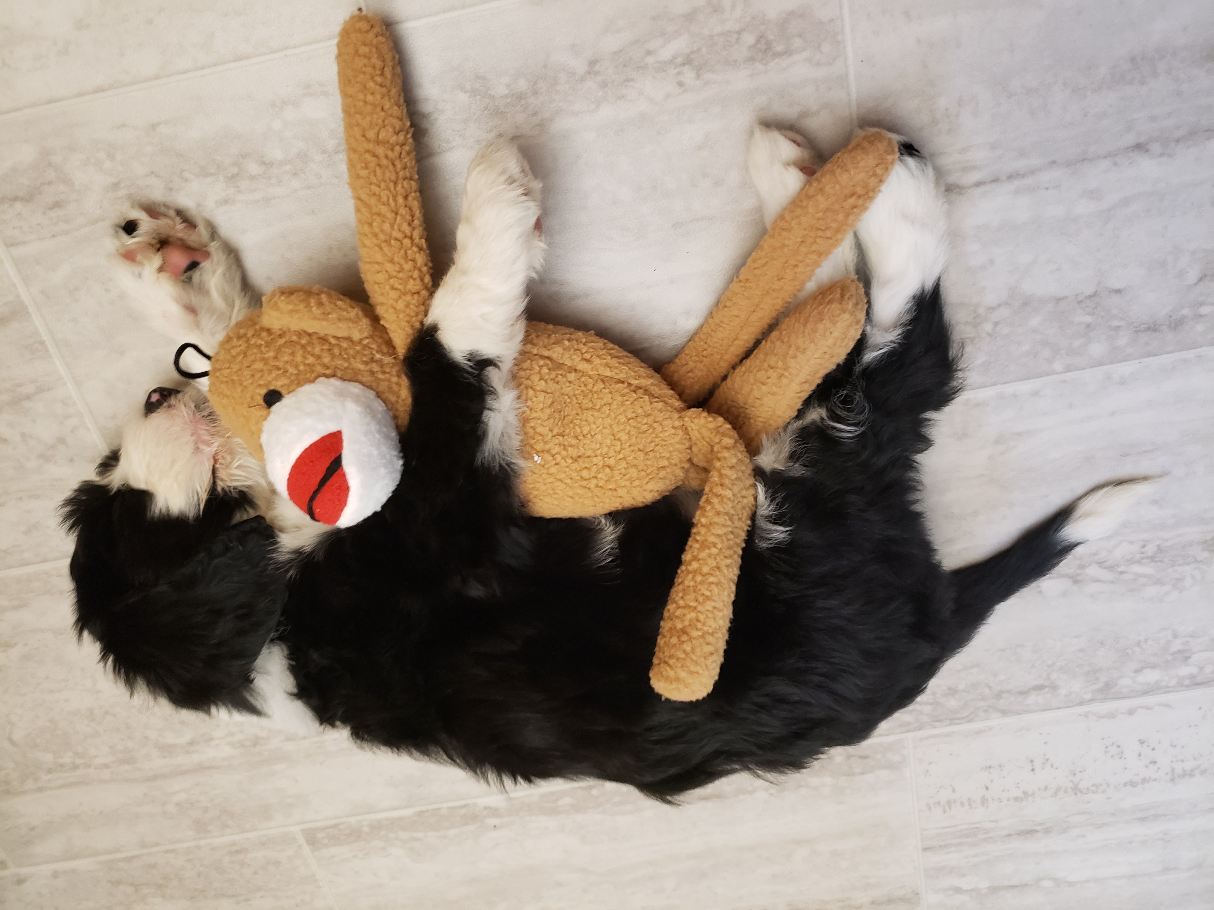 Bernedoodle puppies in Grand Forks, ND tend to have moderate energy. Typically, dogs with a moderate energy level may require around 30 to 60 minutes per day of physical activity, though individual dogs may fall outside that range.