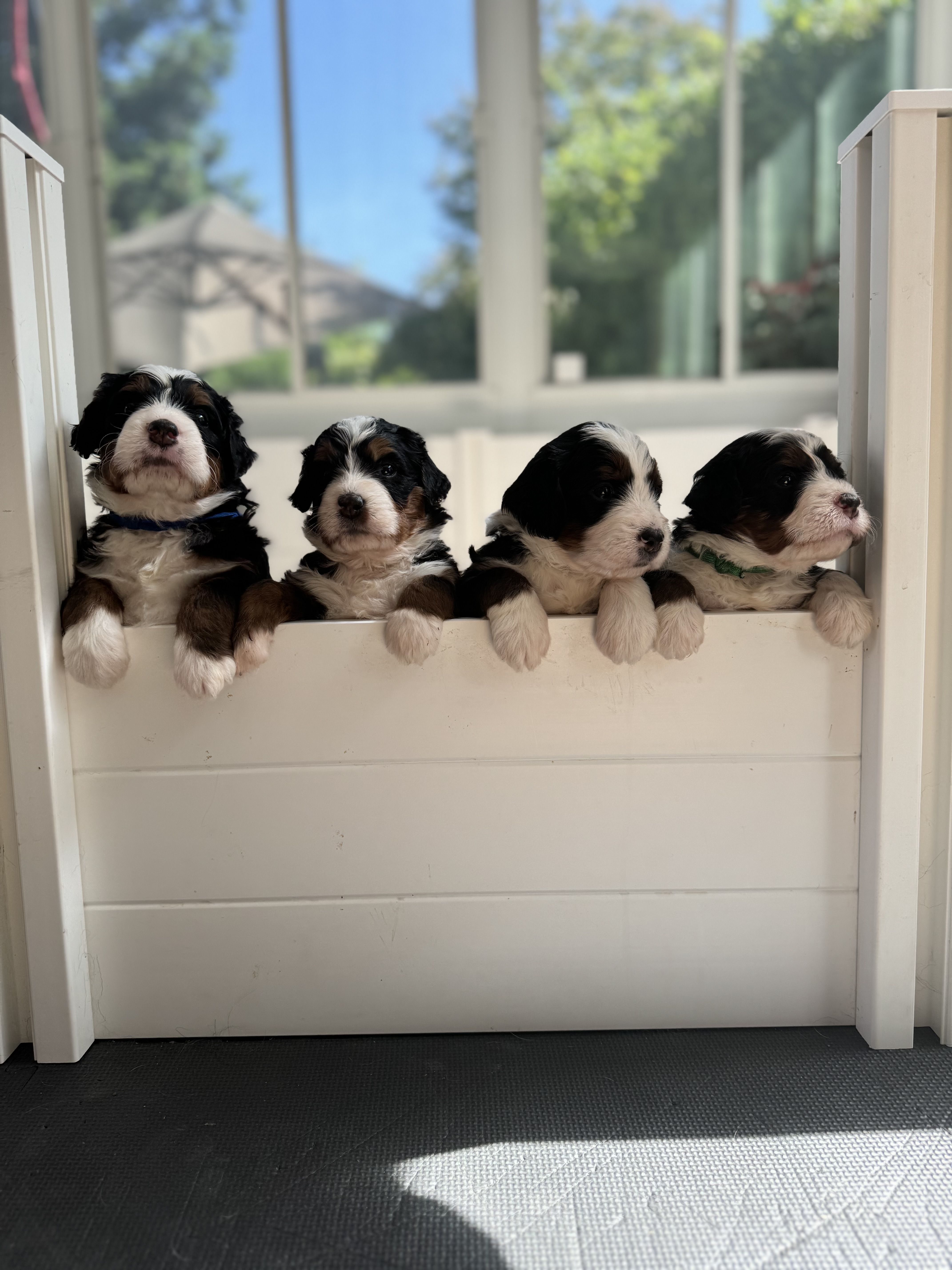 Bernedoodle puppies in Lodi, CA tend to have moderate energy. Typically, dogs with a moderate energy level may require around 30 to 60 minutes per day of physical activity, though individual dogs may fall outside that range.