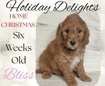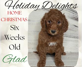 Our Golden Retriever puppies are dark golden. Goldendoodle puppies include cream, apricot, red, chocolate, black, phantom, and parti. Colors will vary depending on the parent dogs.