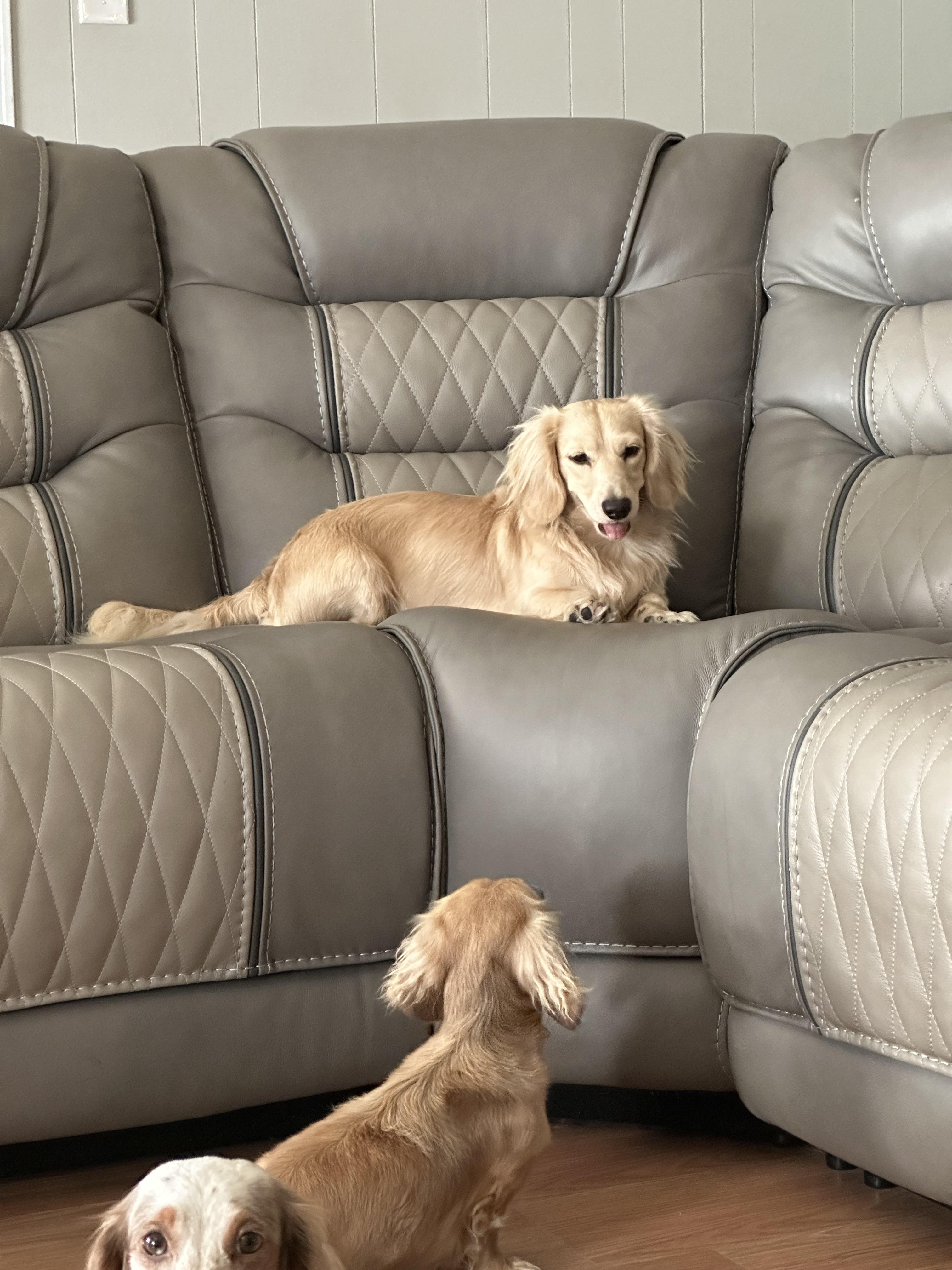 Although this process can be nerve-wracking for many, including us, Mrs. Moore provided frequent updates with pictures and videos of Butters from the moment he was born. These constant updates were greatly appreciated and helped settle our nerves. On adoption day, Mrs. Moore provided all necessary documentation and even a starter kit with food, toys, and a blanket with the mother's scent. Even after adoption day, she followed up to ensure the transition was smooth for us and Butters. Knowing that her husband is a veterinarian made us feel even more comfortable, alongside her extensive knowledge of mini dachshunds.