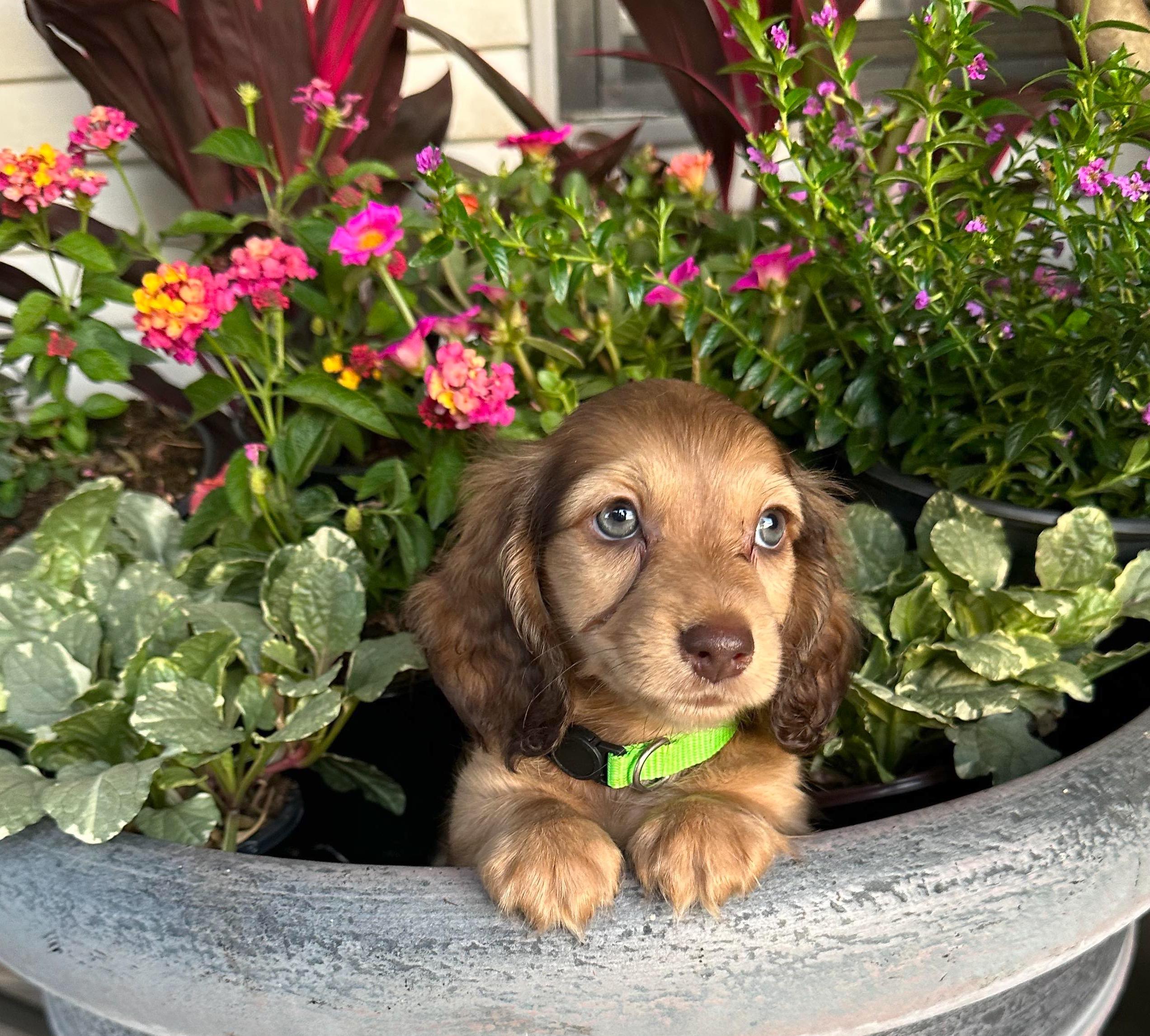 I'm Heather M., the breeder behind 1 Moore Dachshund located in Brenham, TX. Our mission is to raise healthy, happy, adorable Dachshund puppies and connect loving families with their new best friends! We cherish each of our dogs and puppies, and we do everything we can to make sure that they get the best lives possible. That includes everything from choosing healthy parents with good temperaments, to proper socialization and daily care, to placing them in loving homes with wonderful families. We strive to provide each of our puppies and their families with a truly positive experience!
