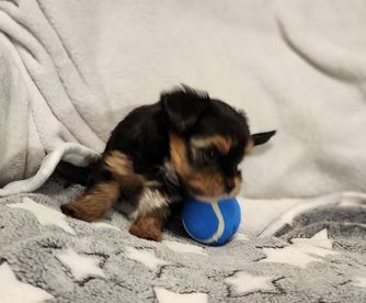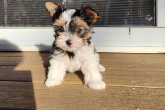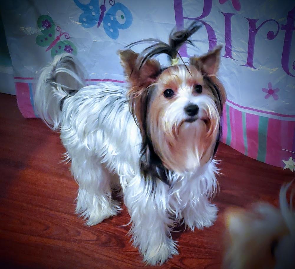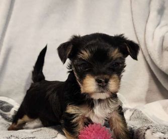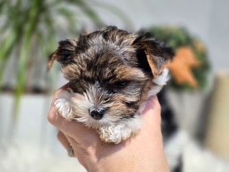 Our Yorkshire Terrier puppies include gold, chocolate, tan and white, parti, black and tan, and black and gold. Biewer Terrier puppies are blue tan and white. Colors will vary depending on the parent dogs.