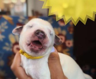Our puppies are white and black. Colors will vary depending on the parent dogs.