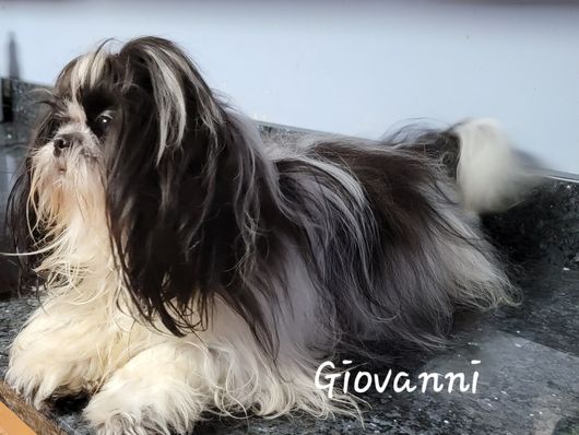 Giovanni is FCIC and AKC registered. She is originally from the UK. She is passive and sweet and has the kindest demeanor. Her puppies have turned out beautifully. Terrific hair and body structure. DNA and health tested.