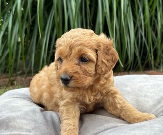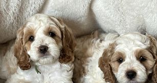 Our Cockapoo puppies include brown and tan, cream, red, buff, and red and white. Colors will vary depending on the parent dogs.