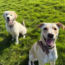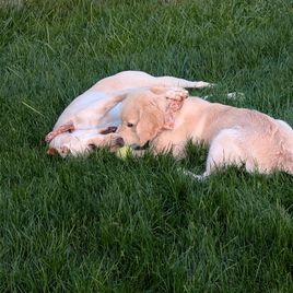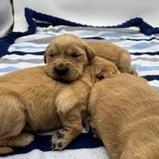 My wife and I were thrilled with our experience adopting a golden retriever from Bridget at 11 Oaks Kennels. When we arrived, she and her siblings were inside the house, being cared for. She sent us home with all the materials we needed to get started with a new puppy and was patient and answered all of our questions leading up to pickup. I think she was even partially potty trained, as she got it immediately. We're only 4 months into raising our little Marley but she is growing into the sweetest and most loving dog. Our older dog Bailey, adores her, and they play together every day, walk with us together every morning, noon, and evening, and she's the star of her puppy class, being used to train the shy puppies because of her stellar temperament. I would highly recommend adopting from here and would myself if we're ever fortunate to add another golden to our home.