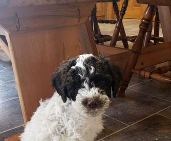 We had never heard of Lagotto's when we started the search for our new addition to the family. We looked at several breeds but there are not that many Lagottos out there. We're so grateful Maria was so knowledgeable and willing to share that knowledge with us. The whole process was comfortable and Maria helped us get set up for our new puppy helping us get set up for success with our puppy. As for the puppy, he's turned out to be the perfect dog for our family so Maria did a great job putting us together. He's healthy, the playful dog our son wanted, a lapdog when our daughter is sad. He's my exercise companion, reminding everyday to get out there and do something (with him). A quick learner who wants to do the right thing, his temperament is perfect. Just a great, happy dog. Thank you to Maria (and Rue).