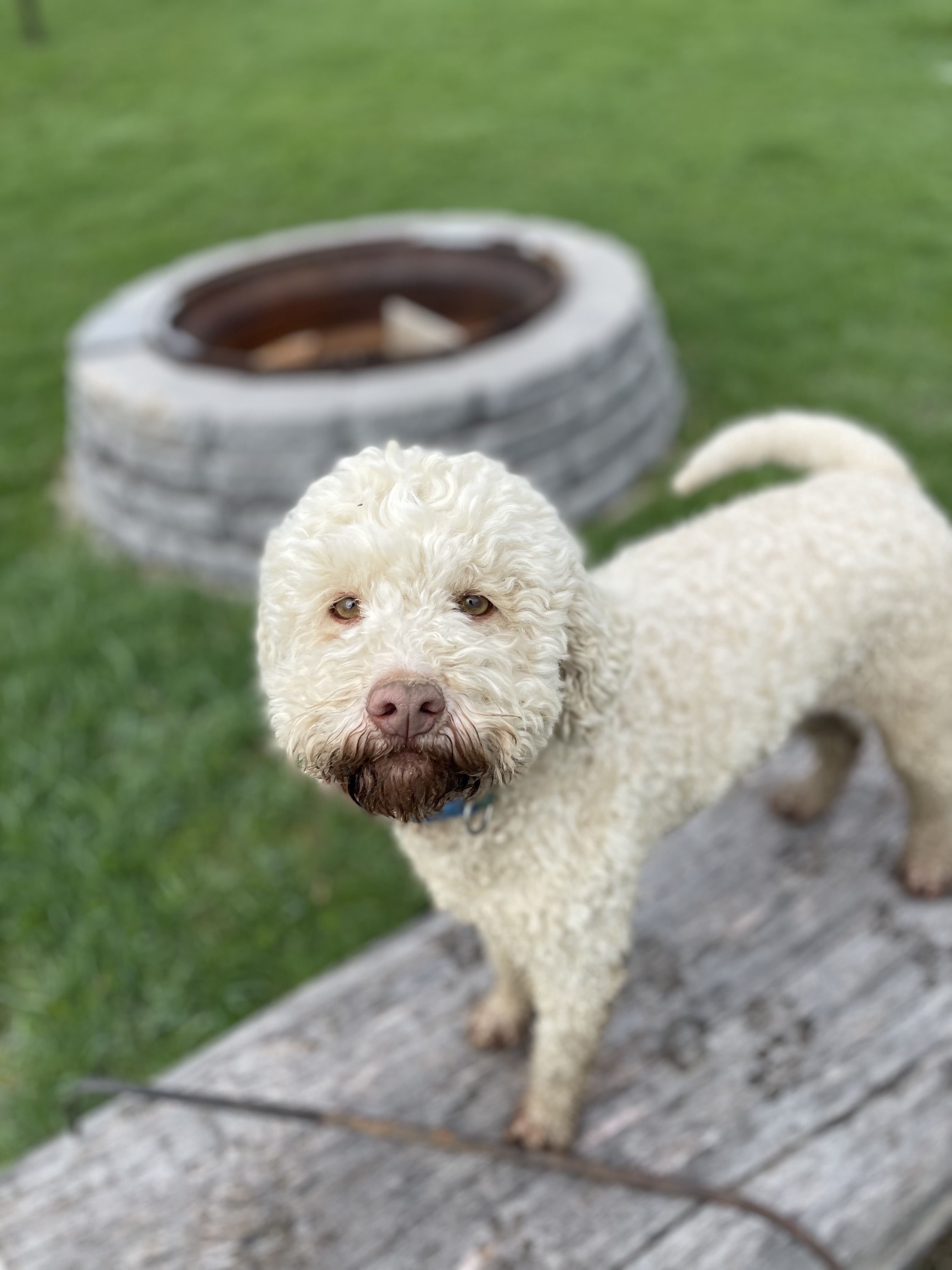 We have been so pleased with our experience and relationship with 1880 Lagotto. From the very start, when we were inquiring, Maria was so helpful and thorough about the breed, her breeding experience, her dogs, as well as learning about us. Once the puppies were born, we received frequent updates and pictures. We were impressed with the training and exposure that was happening from the very start and it really made a difference once we brought Gitchi home. The loving home environment exposed him to new sights, sounds, and people of all ages. He loves being around people, especially children. And, of course, every dog he wants to be his best pal. While we chose to have him as a family dog, we have also been very pleased with his ability in training and learning new things. He loves obstacle courses, swimming, and his favorite, retrieving (especially balls). 1880's philosophy with the training of Puppy Culture, provided him with a very solid foundation that we have been able to build upon. Maria takes the time to know the puppies and they are given a personality test which she then can match them with their people. Gitchi has been a perfect match and we couldn't be happier. In addition, Maria has always been available to answer and questions as well as sharing the joy Gitchi has/is providing us. We would definitely stay with Maria for future puppies.
