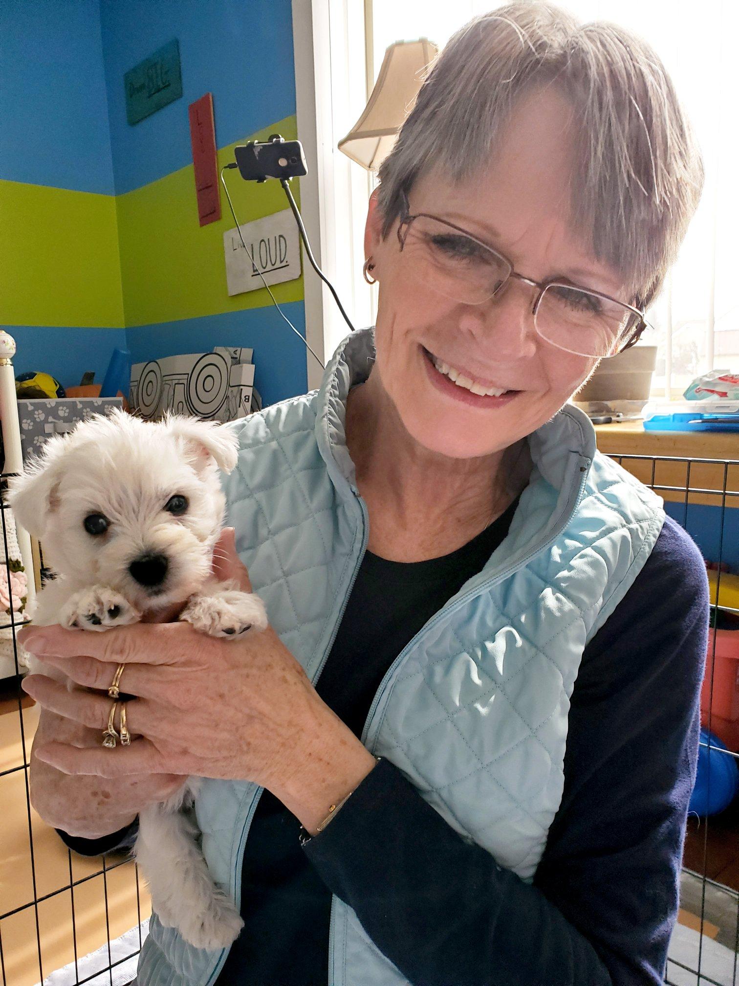 Sophie is a female West Highland White Terrier. Carefully selected as a great representative of her breed, Natalie decided to make her part of their program. Natalie has passed Good Dog’s screening process, which involved a review of their breeding practices, environment, and the mental and physical health of their dogs.