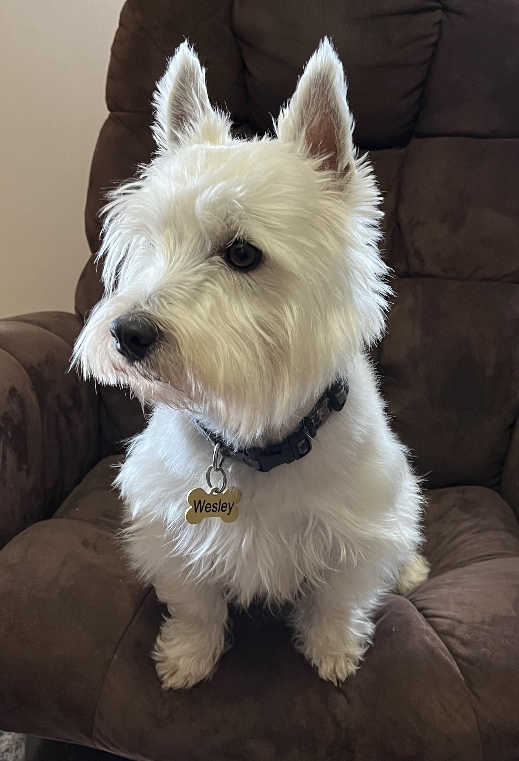 Wesley is 3 years old and we got him from a Westie breeder friend who was retiring. When we got him he had never been in a house - spending his time in a sheltered (heated/air conditioned) kennel. We at 2 Cute Westies have all our dogs and puppies living in our home with us.