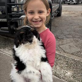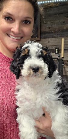 We had a wonderful experience with Rosa and couldn’t be happier with our new Bernedoodle, Cooper! From the very beginning, Rosa was responsive, professional, and clearly passionate about her dogs. She quickly answered all our questions and even arranged a virtual meet and greet so we could get to know Cooper before bringing him home. Cooper came to us at 4 months old and was already crate trained, working on his manners, and making great progress with house training. He’s a sweet, energetic pup who fits perfectly into our family, especially with our 2-year-old—he's patient, playful, and full of love. Rosa went the extra mile by sending Cooper home with a thoughtful welcome kit that included toys and essential care items, which made the transition even smoother. We’re so grateful to have found such a dedicated breeder. Thank you, Rosa, for helping us bring Cooper into our lives!