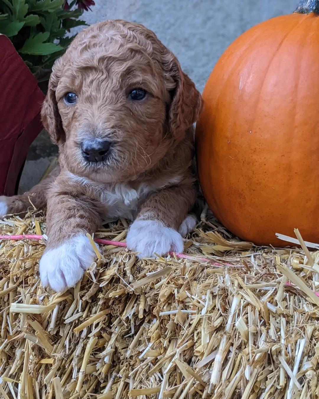 Our puppies include gold, red merle, white and gold, white and black, and blue merle. Colors will vary depending on the parent dogs.