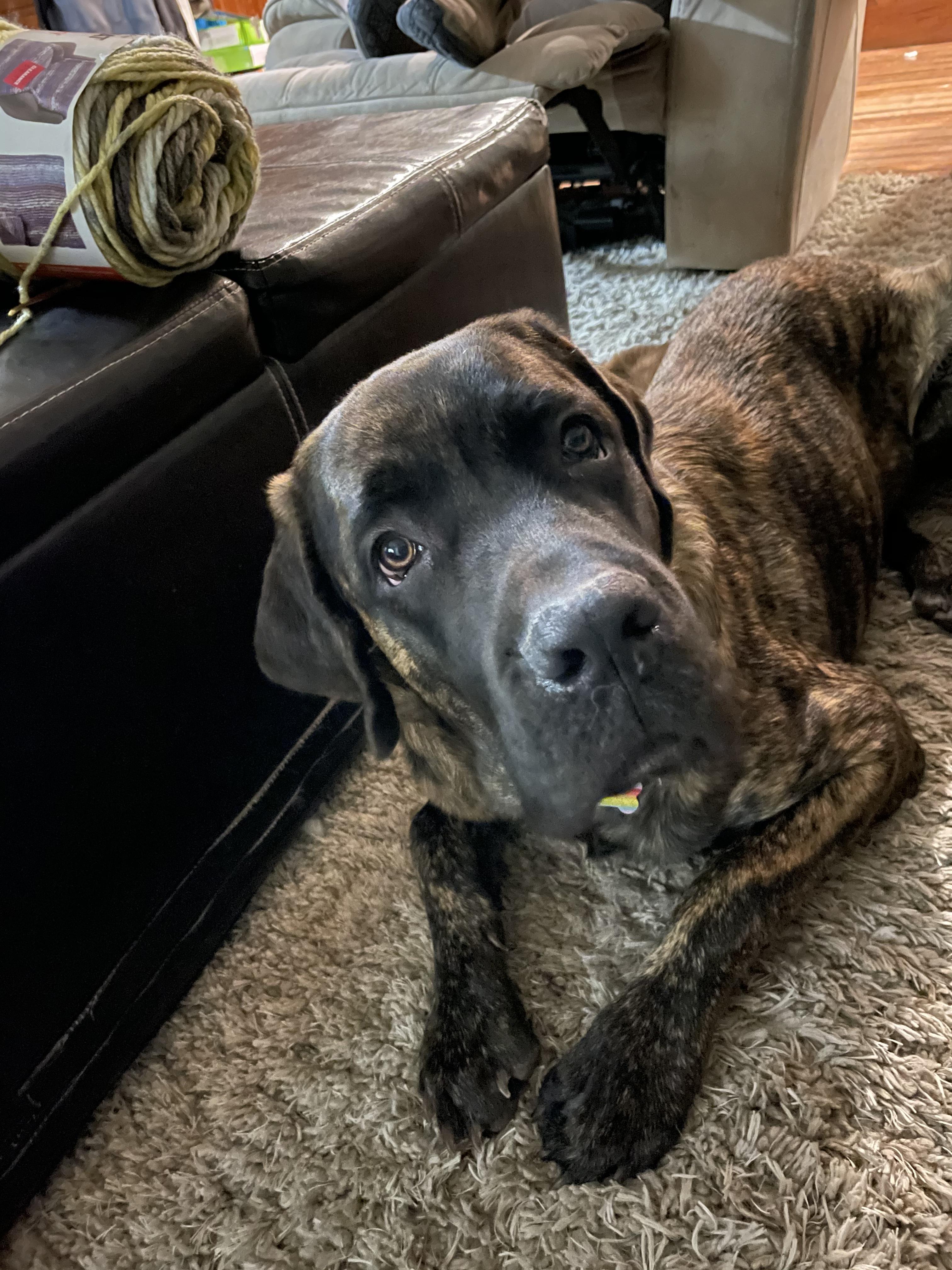 Amari is a female Mastiff over 5 years old. Carefully selected as a great representative of her breed, Kiri decided to make her part of their program. Kiri has passed Good Dog’s screening process, which involved a review of their breeding practices, environment, and the mental and physical health of their dogs.