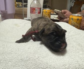 Our puppies include fawn and brindle. Colors will vary depending on the parent dogs.