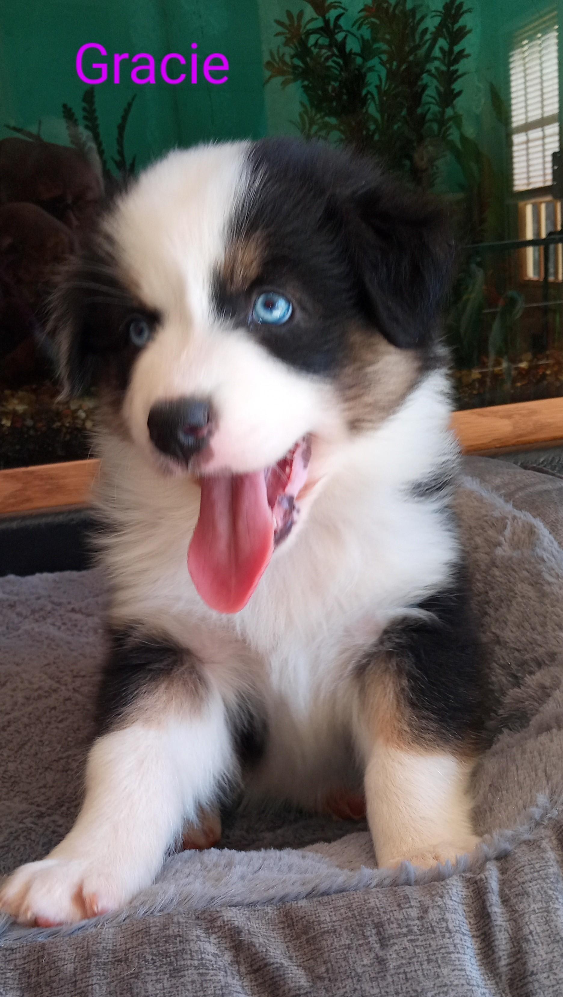 Our puppies include blue merle and red. Colors will vary depending on the parent dogs.