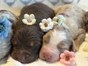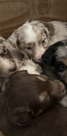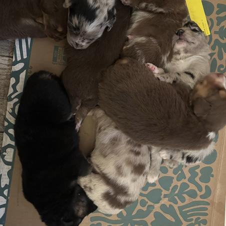 We lost our first Aussie unexpectedly and quickly, and we were heart-broken. She was so much a part of our everyday life and not having her with us was very hard for our family. We decided to get a puppy a few months later and contacted a local breeder. We had such a wonderful experience visiting the two puppies that we bought and were really intrigued by the entire process. Aussies are wonderful companions and adventure buddies and we wanted to give other families the opportunity to love one. We went through the process of testing and were thrilled to find a sire to call our own as well. Delivering puppies to their new owners brings us so much joy and we love seeing updates and pictures of our puppies thriving in their new families! It's a full circle process for us!