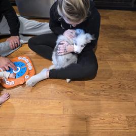 From Wobble Wag Giggle Balls that make fun noises to soft snuffle mats that encourageproblem-solving, & provide interesting textures (treats will be added later!), we expose our puppies to a variety of sensory experiences. They walk on different surfaces, interact with new objects, and engage in activities that stimulate their minds and bodies.