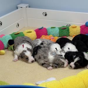 Temperament Evaluations. After your puppy is born, we send daily emails to help you prepare for your new furbaby. Topics covered include crate & potty training, appropriate exercise, choosing a vet, puppy-proofing your home, & much more! In-home puppy nursery- designed for the utmost care & comfort of our Mama's & puppies! Many puppy families have added a 2nd 2J 2K Border Collie to their home.