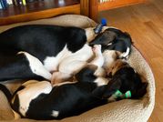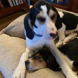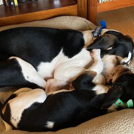 As I sit and try and write about my experience with Sally and 3 Color’s Kennel Walker Division, words escape me. About a year ago, my husband and I lost our 16 year old Coonhoud to illness and for anyone who has had the love of a Coonhound, they leave a very big hole when they are gone. When we finally decided to start looking for another one, we wanted to make sure that we found a breeder who was responsible, reputable, and who truely cared about their animals. After much looking and research, I was lucky enough to find Good Dog and even luckier to find Sally and 3 Color’s Kennel Walker Division. As we began this process, it was as much her interviewing us too, just like we were interviewing her…she wanted to make sure it was a good fit and that we would be caring pet owners. She was extremely patient with all our quesitons and very quick to respond. Initially we were going to get one puppy but a few weeks prior to us getting Yrsa (Little She-Bear) another slighty older puppy also became availabe from another of Sally’s litters, Coco (now known as Ylva [Little She-Wolf]), and we were lucky enough to be able to get both! We hurried to make sure we could reserve her and then Sally did everything to get all their flying certificates and get them booked to fly them out to us. We just got them on 12/11/24 and could not be happier. They have been a handful for sure but have acclimated quite well, get along with each other fantastically and are quickly adapting to a cushy and easy (and spoiled) lifestyle. I am hoping that Sally and 3 Color’s Kennel Walker Division is around in 15+ years because we would 100% love to work with her again.
