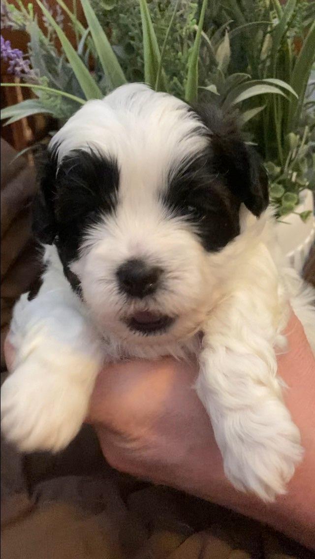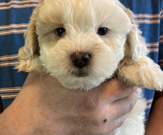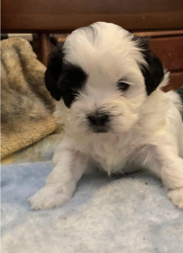 Our Mal-Shi puppies include black gold and white and white and tan. Shihpoo puppies include gold, black and white, and gold and white. Colors will vary depending on the parent dogs.