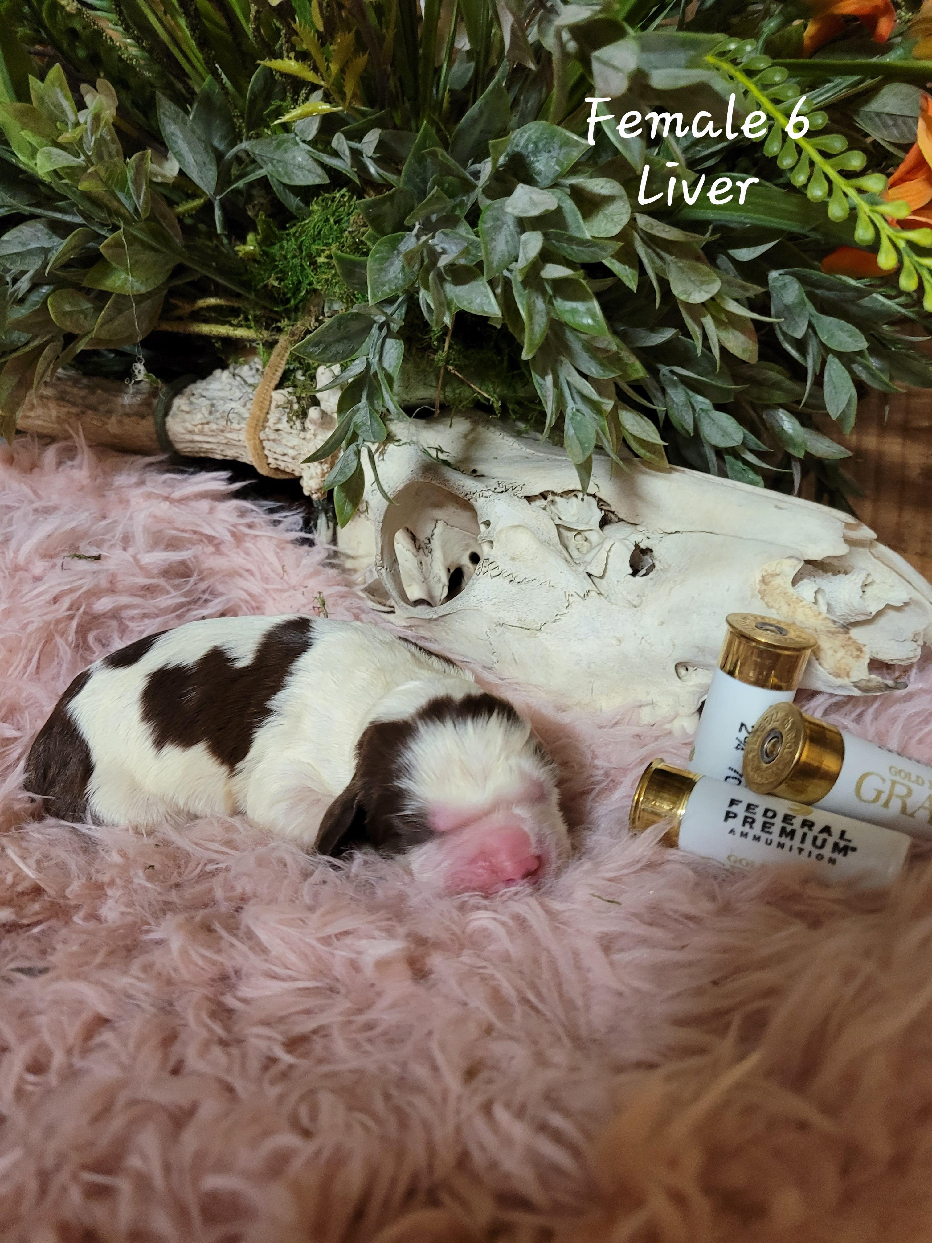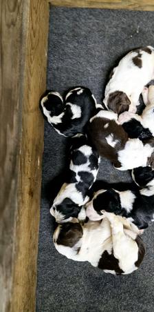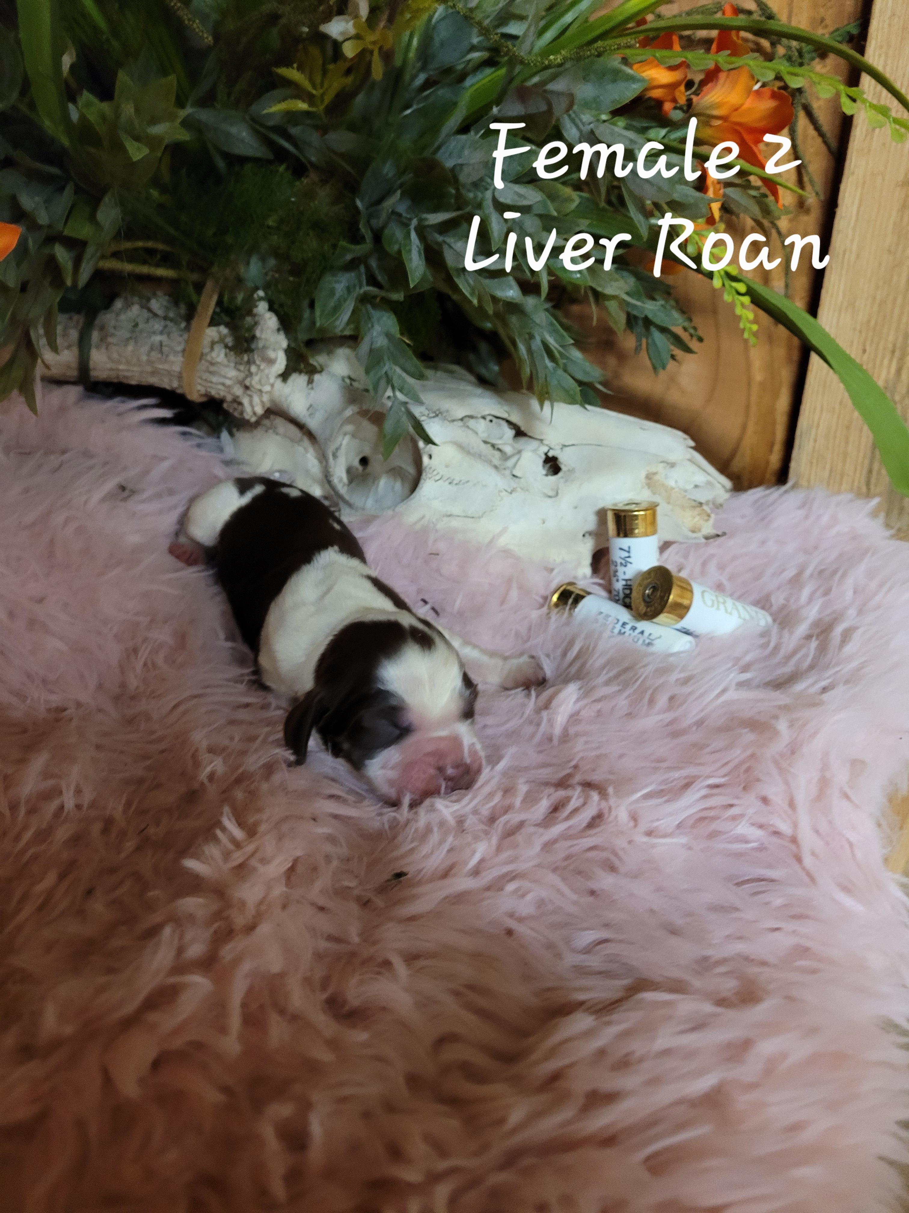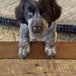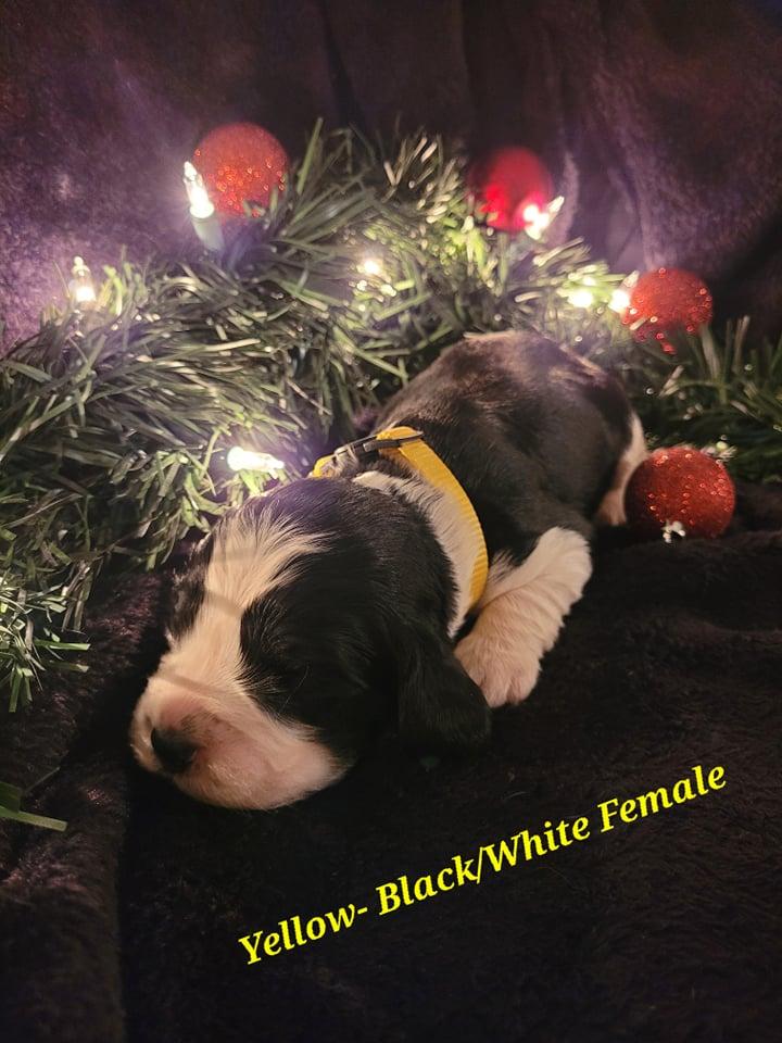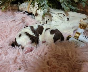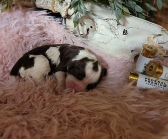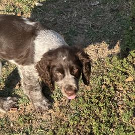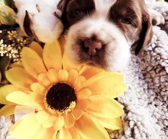 Our Boykin Spaniel puppies are brown. English Springer Spaniel puppies include liver white and tan, liver and white, black and white, and black white and tan. Colors will vary depending on the parent dogs.