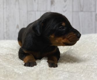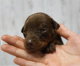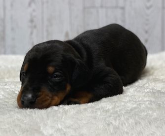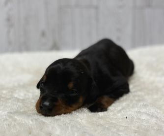 Our puppies include black and rust and red and rust. Colors will vary depending on the parent dogs.