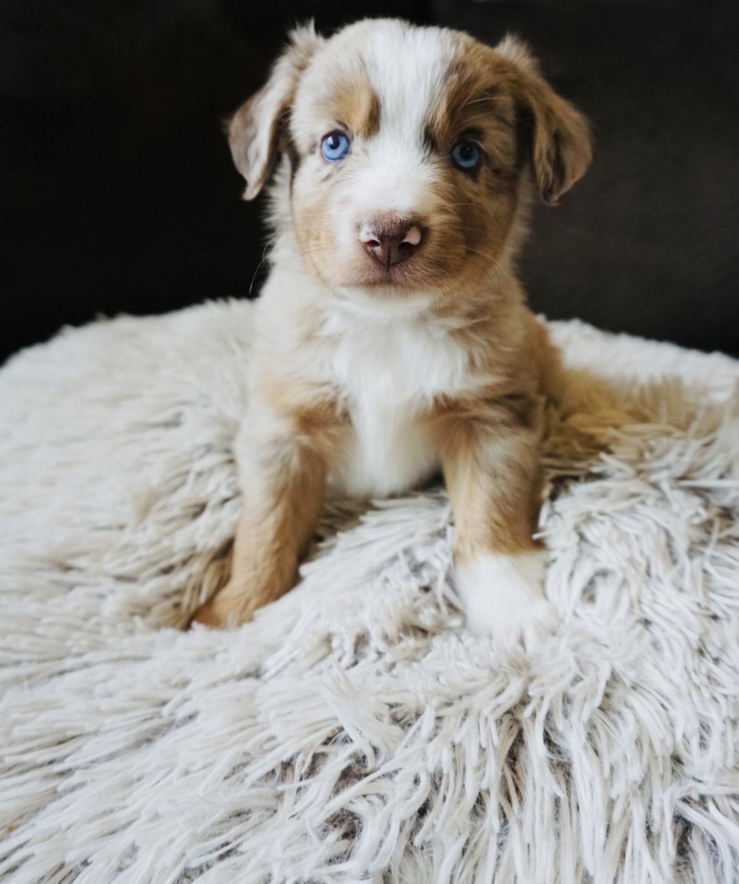 Our puppies include red & white, black & white, blue merle, black tri, red tri, and red merle. Colors will vary depending on the parent dogs.