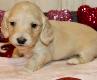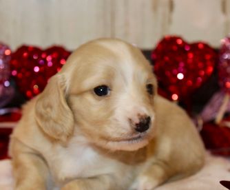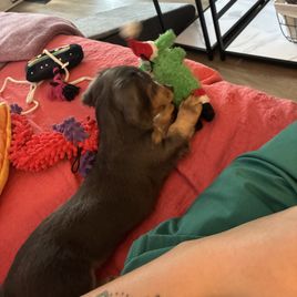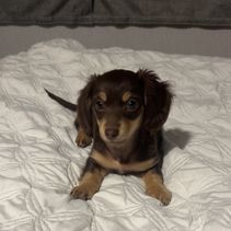 Jessica was very responsive and easy to work with. We found “Daisy,” then called “Boots,” and asked about her availability. Jessica was very quick to respond and was happy to share lots of pictures while we waited for Daisy to be old enough to take home. Pickup was also very easy and Daisy was healthy and already a little potty trained. We have been so happy with Daisy and had a great experience with Jessica and would definitely recommend her if you are looking for a long haired mini dachshund.