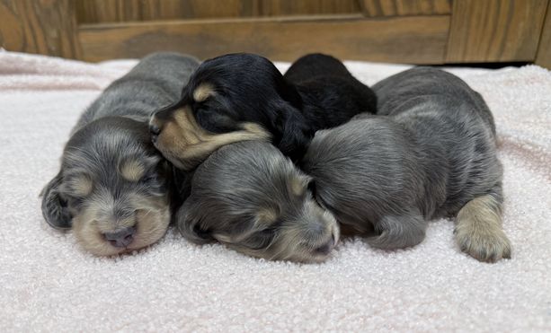 I'm Jessica H., the breeder behind 3B Doxies located in Roanoke, AL. We raise our litters in our home to help set the foundation for happy and confident puppies to transition well into their forever homes. All of our parent dogs are health tested, and we only breed those with the best temperaments. Our puppies are handled daily, so they are well socialized and loved.