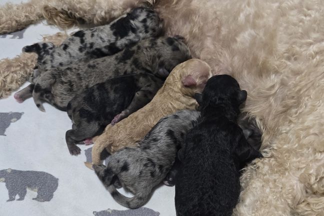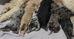 Our puppies include silver, cream, apricot, black, merle, and parti. Colors will vary depending on the parent dogs.