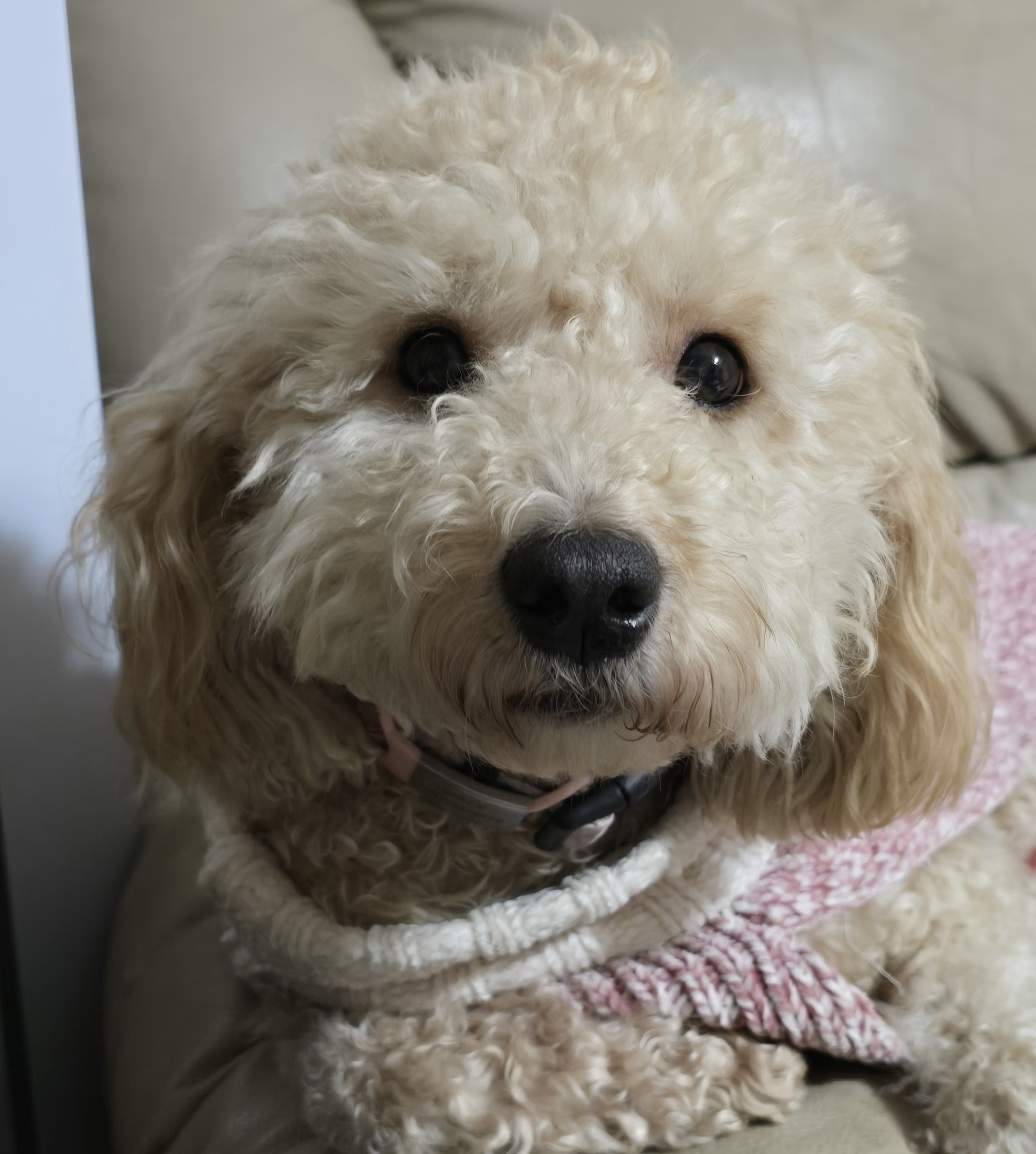 Has never met a stranger. Larry has a coat like velvet. The softest doodle coat ever!