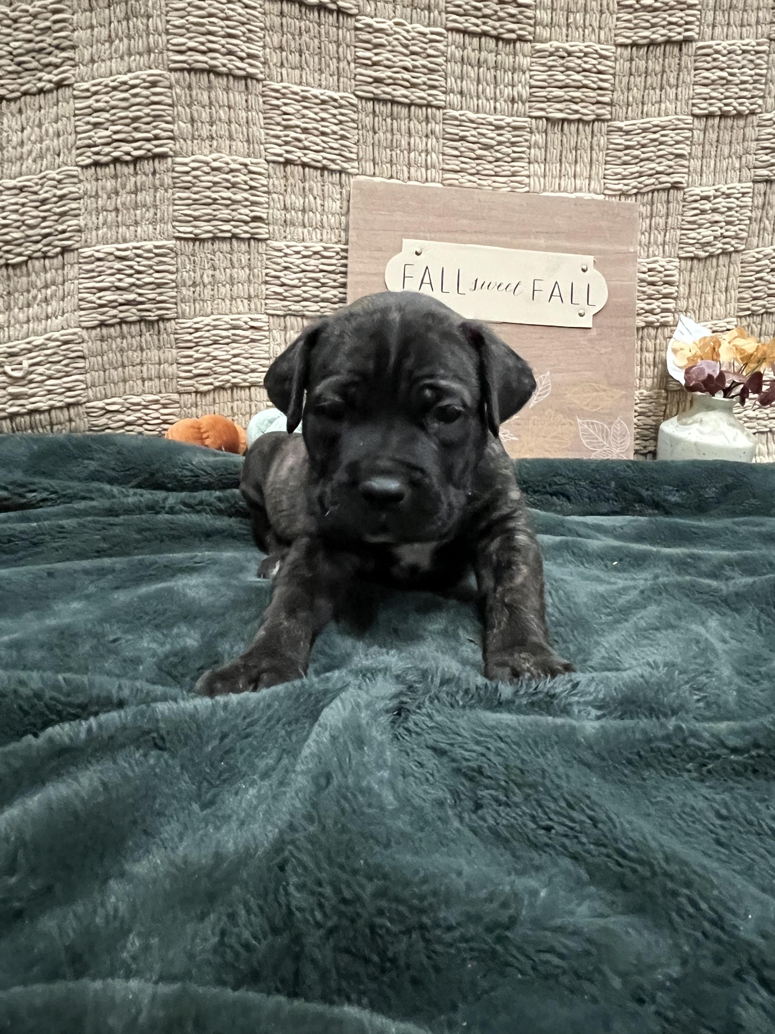 Our puppies include gray and fawn, chestnut brindle, black, black brindle, fawn, gray, and gray brindle. Colors will vary depending on the parent dogs.