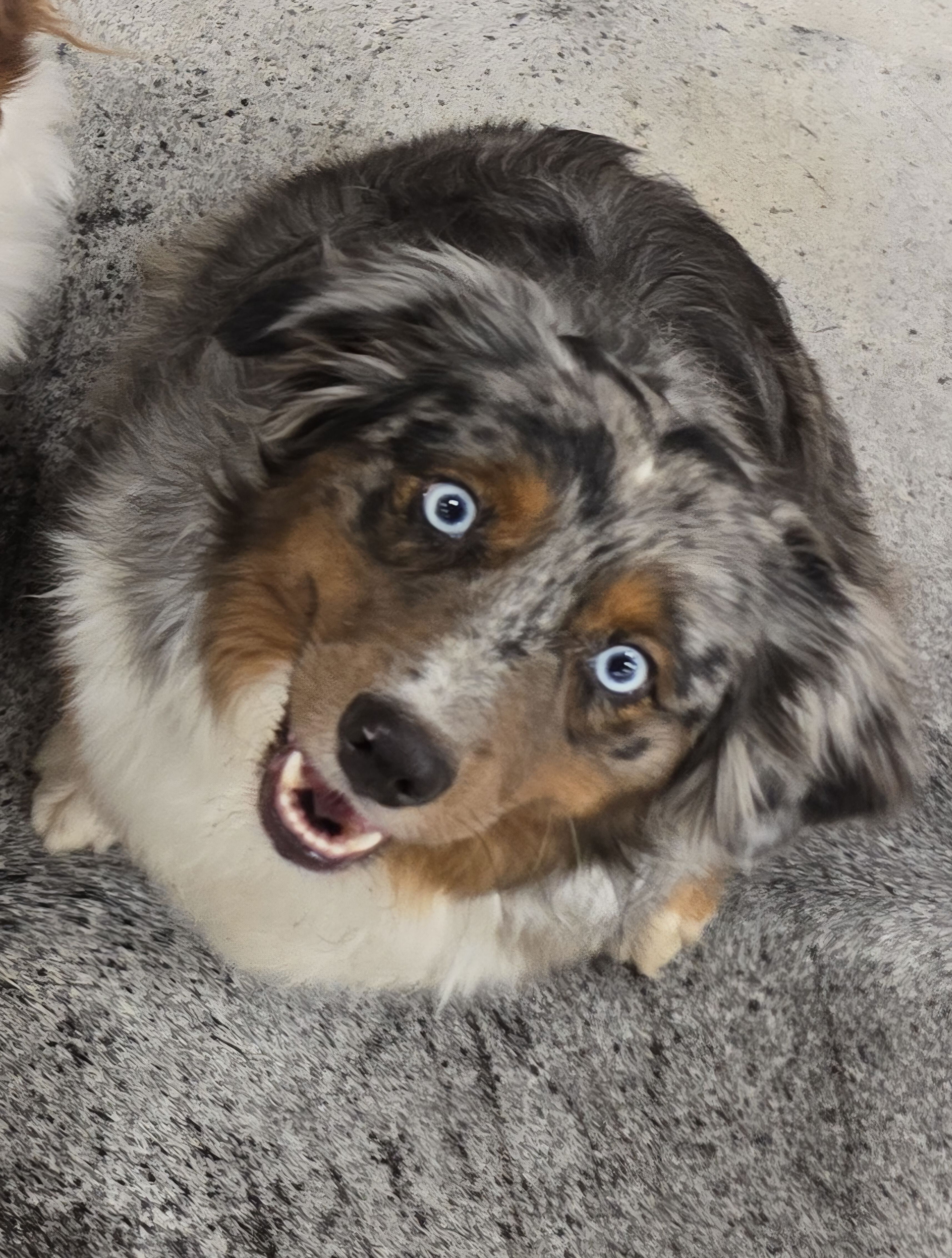 Blue Merle with double blue eyes and copper points - loves everyone and is crazy about balls!