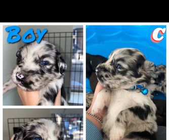 Puppy. Puppies will have had first vet check and be current on Vaccines. It will also include ASDR and CKC Registration. Deposit are $500. This is to reserve your chosen Standard Australian Shepherd puppy.”