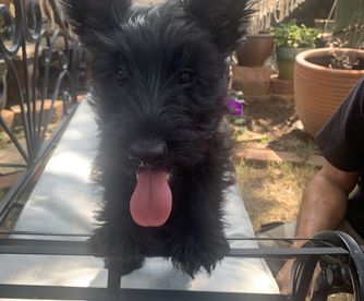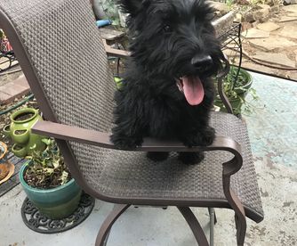 Because of our 1st Scottie, Kyra. Roy’s little sister bred her baby Layla, and she wanted us to have one of her pups. We chose the little girl who was the runt. We fell in love with her and the rest is history. Smartest, full of personality, stubborn and beautiful. That was Kyra! You know, once you have a Scottie, the rest is history.
