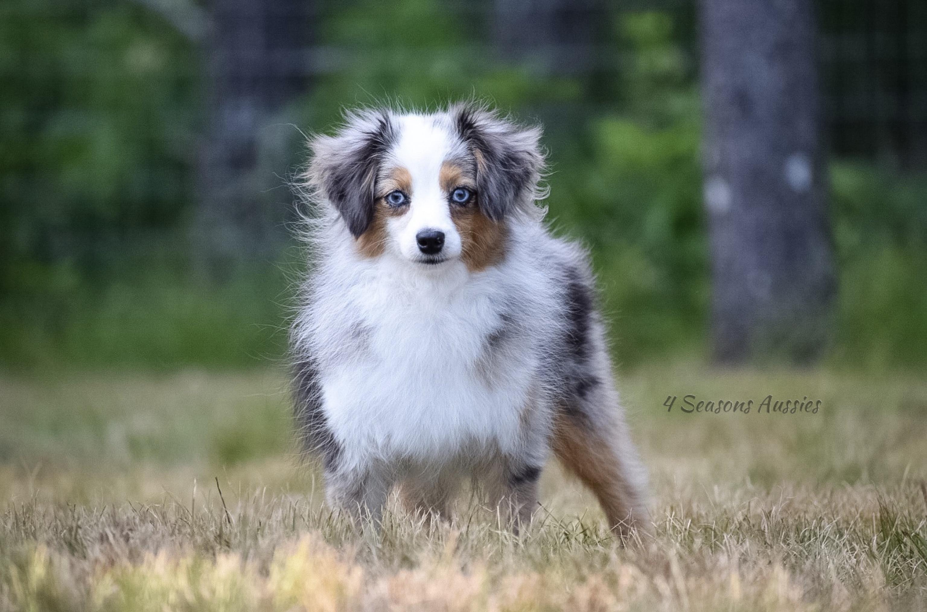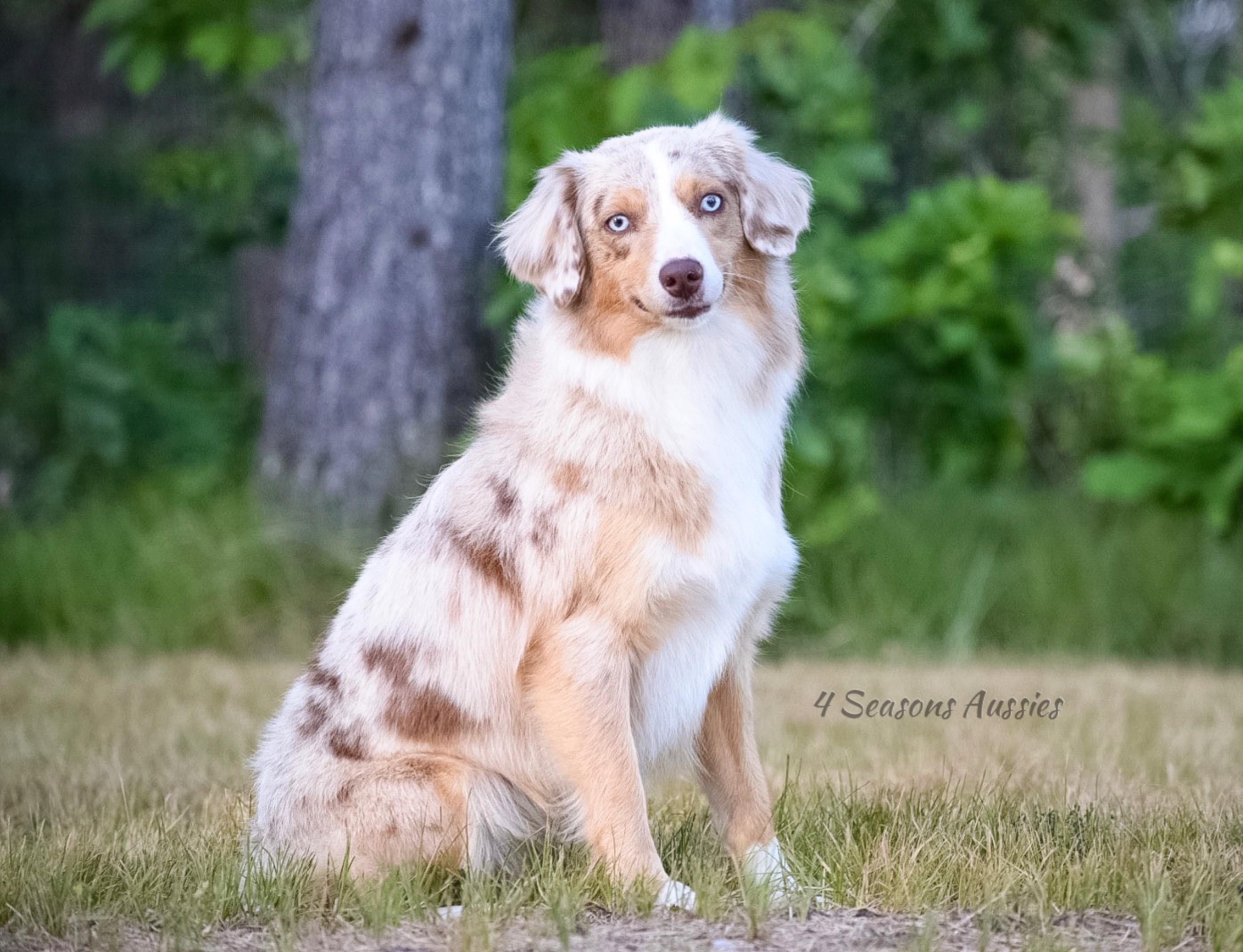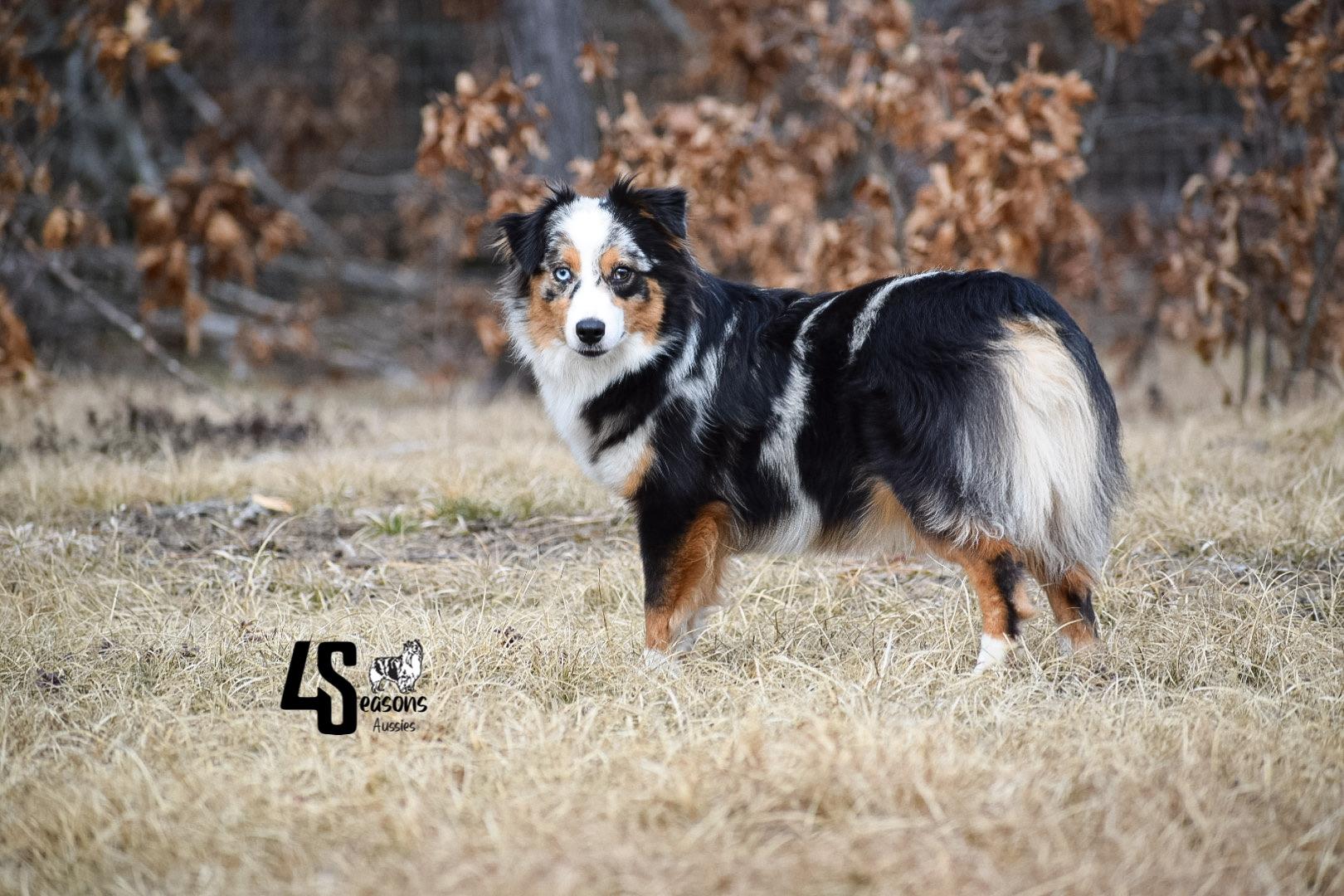 I'm John & Nick W., the breeder behind 4 Seasons Aussies located in Marion, MI. We are a small hobby breeder. We raise only a couple of litters of Toy and Mini Australian Shepherds each year. We strive to produce the best quality pups/dogs that we can. We focus a great deal on the breed standard and are always trying to better the breed with every litter of pups we produce!