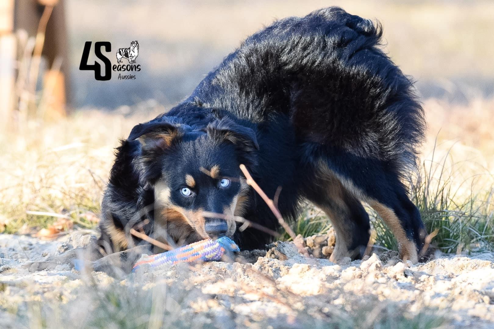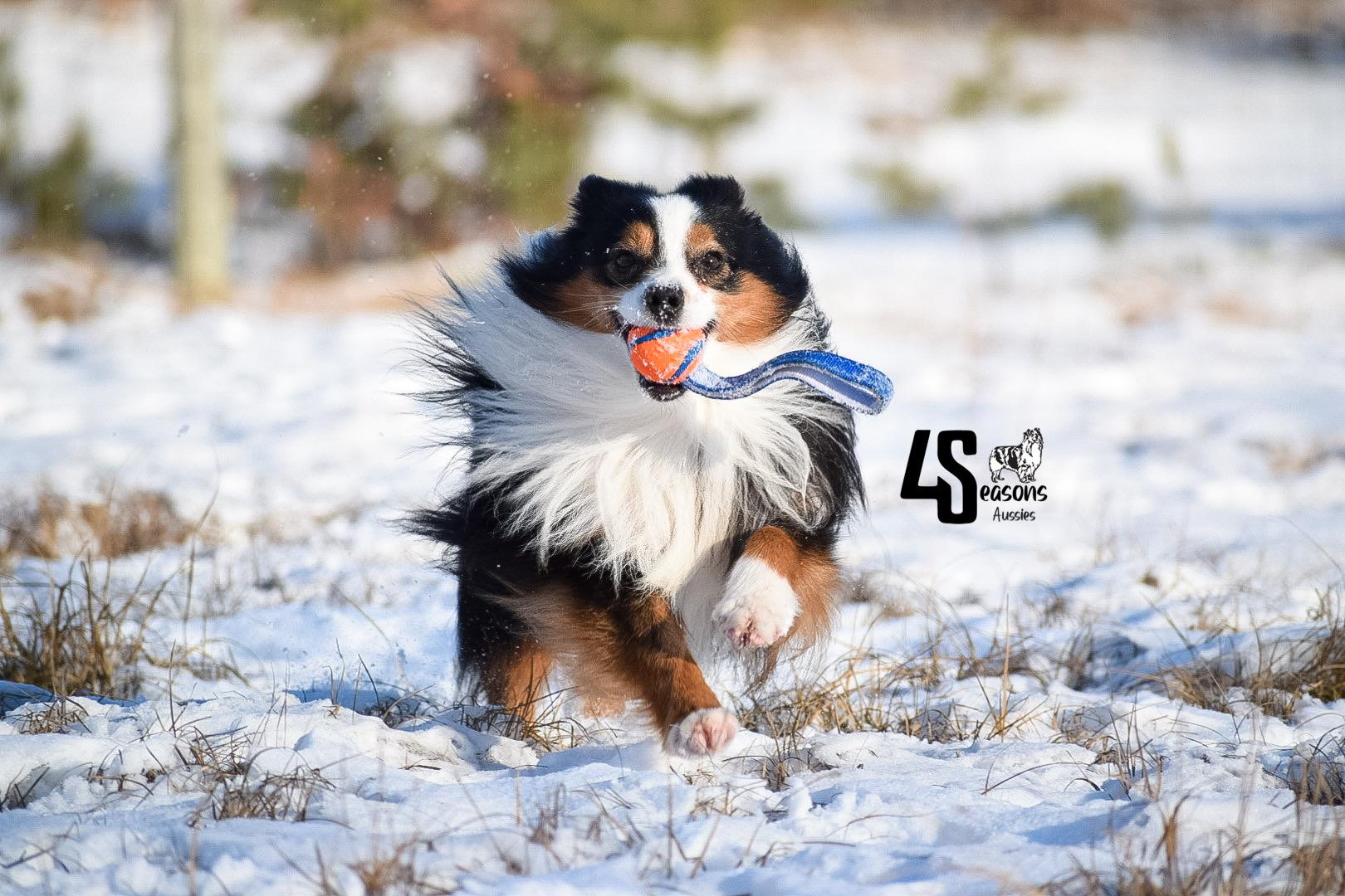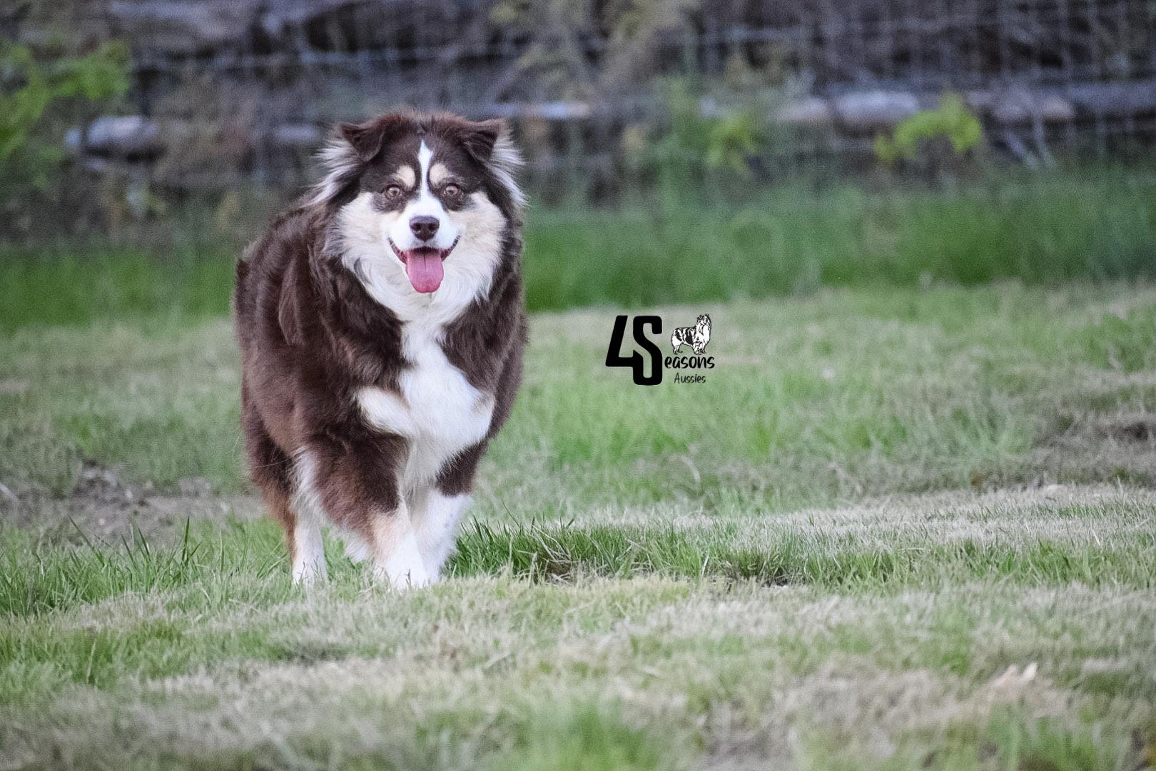 I'm John & Nick W., the breeder behind 4 Seasons Aussies located in Marion, MI. We are a small hobby breeder. We raise only a couple of litters of Toy and Mini Australian Shepherds each year. We strive to produce the best quality pups/dogs that we can. We focus a great deal on the breed standard and are always trying to better the breed with every litter of pups we produce!