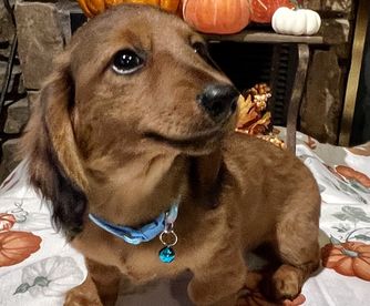 Cooper is a super sweet shaded red mini dachshund stud muffin with such an amazing temperament. He is AKC registered with all genetic/health clearances. He loves people and is always happy to get treats and cuddle up! He is an amazing boy!