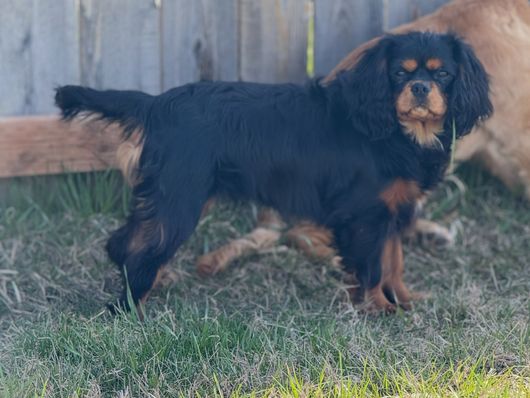 Augie is a gorgeous Black & Tan who comes from exceptional champion AKC Cavalier King Charles blood lines, on both parents sides of the family. He is sweet, a cuddle bug who loves to have a toy or bone in his mouth. He loves to play fetch and is an excellent Retrevier. He is very speedy while doing it. He is a well rounded handsome little fella. Augie adds a special warm place in my heart with his adorable little personality.