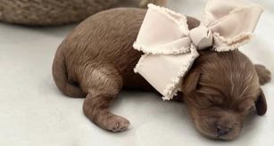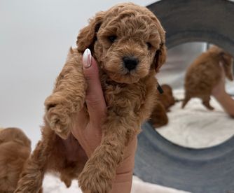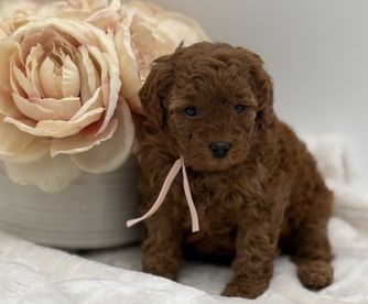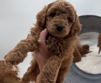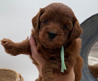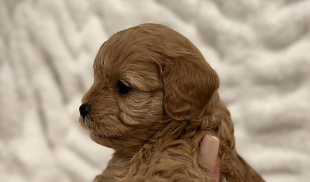 Our Cavapoo puppies include red, blenheim, and apricot. Goldendoodle puppies include apricot and red. Colors will vary depending on the parent dogs.