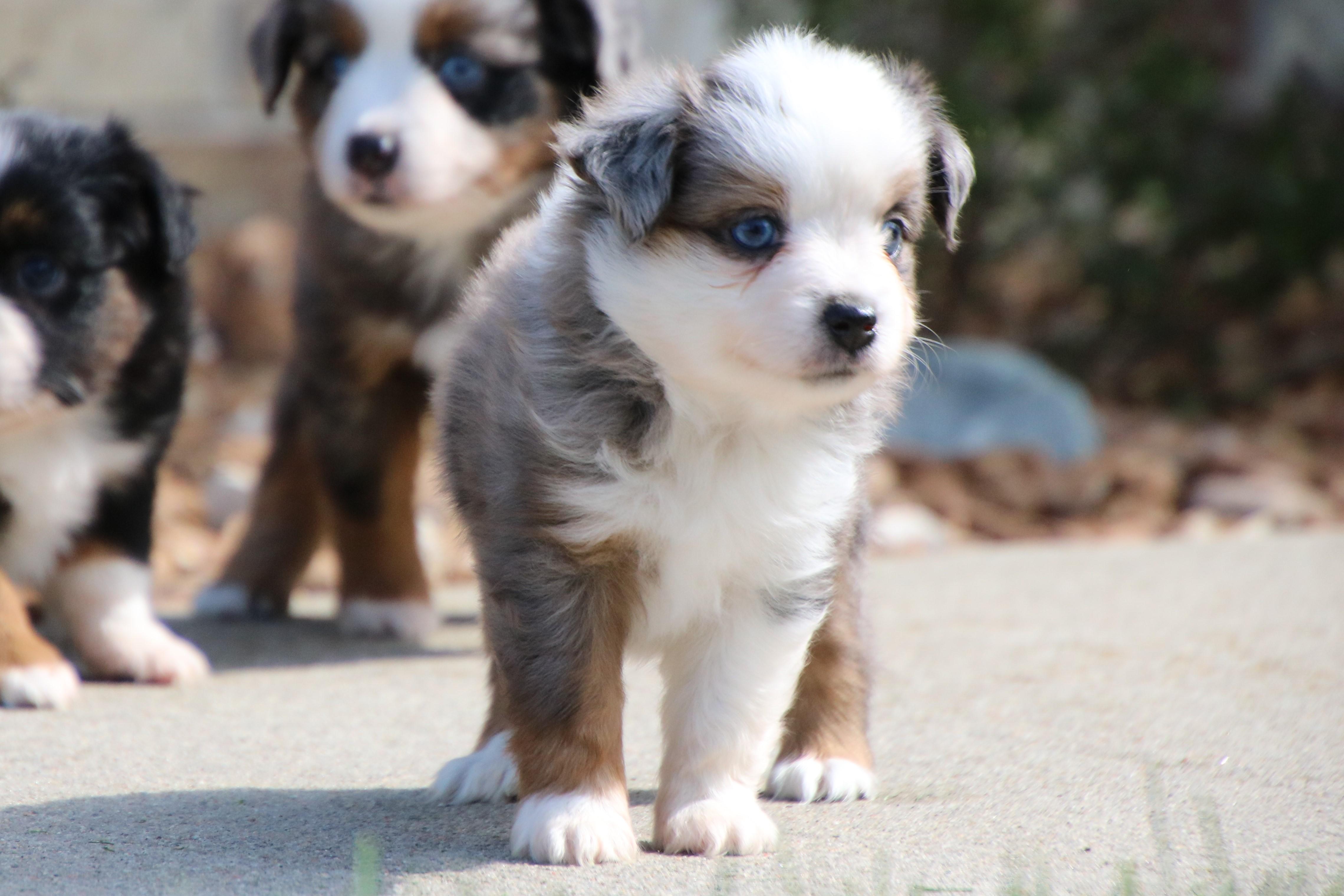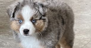 Our puppies include blue merle and red merle. Colors will vary depending on the parent dogs.