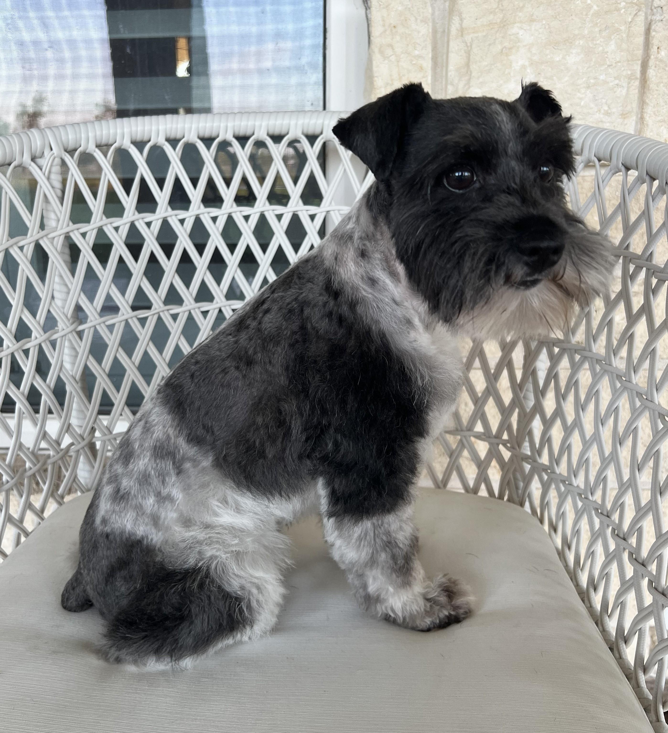 Pistol is a male Miniature Schnauzer. Carefully selected as a great representative of his breed, Courtney decided to make him part of their program. Courtney has passed Good Dog’s screening process, which involved a review of their breeding practices, environment, and the mental and physical health of their dogs.