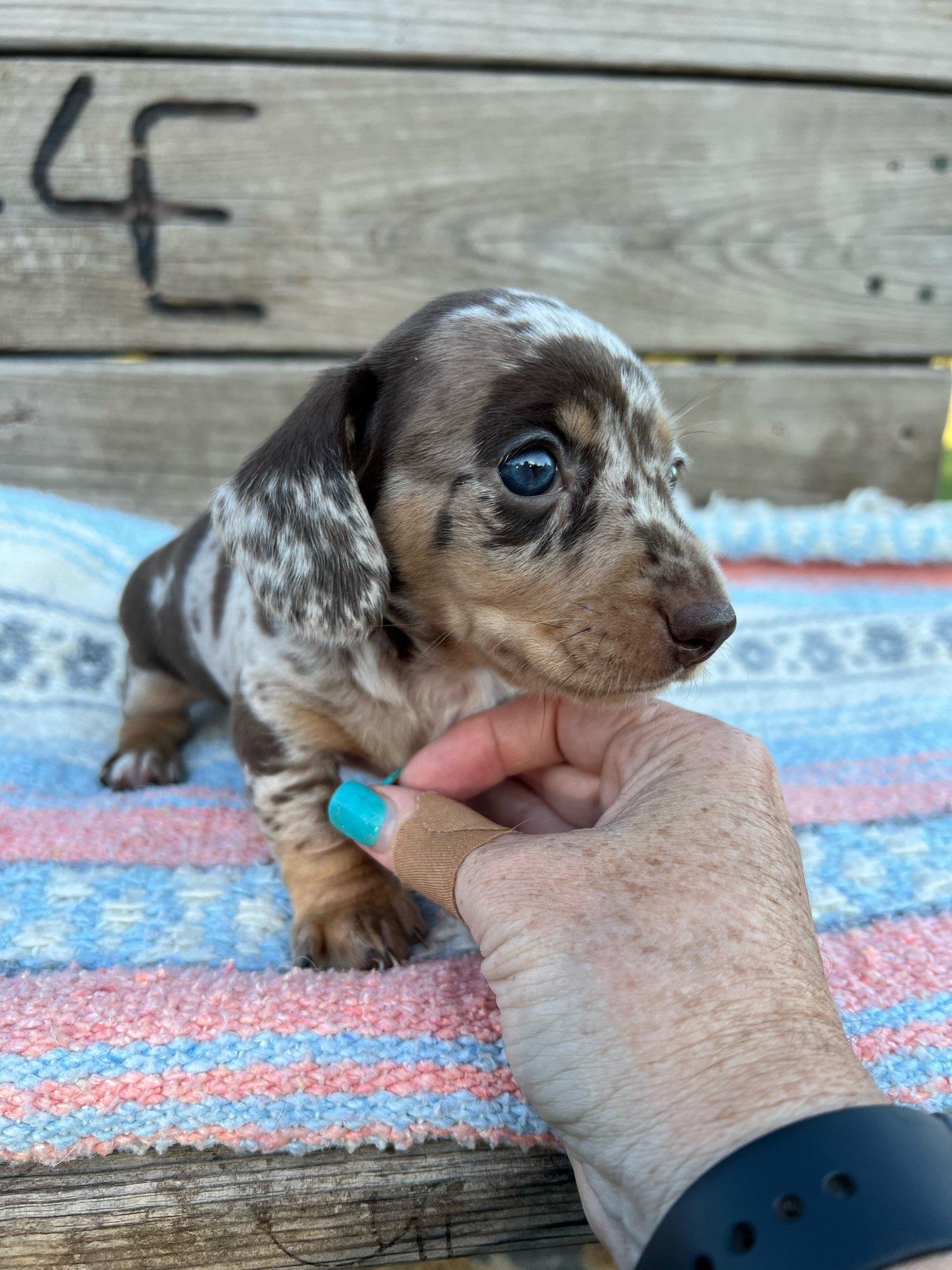 I'm Tedi E., the breeder behind 4E Dachshunds located in Greasy, OK. Dachshunds are smart, playful, affectionate dogs. Our mission is to raise happy, healthy puppies as part of our family until they are ready to become part of yours!