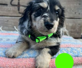 Our puppies include chocolate and cream, chocolate and tan, black and cream, and dapple. Colors will vary depending on the parent dogs.