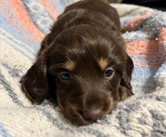 Working with Tedi was absolutely wonderful! From the very beginning, she was so accommodating, kind, and easy to communicate with. You can tell right away how much she truly cares about her dogs and the families they go to. Thanks to Tedi, I now have my best friend Moose, a beautiful mini long-haired dachshund who has completely stolen my heart! He’s healthy, happy, and has the sweetest temperament, a true testament to the love and care Tedi gives her pups. I couldn’t have asked for a better experience or a better companion. If you’re looking for someone who is professional, genuine, and truly passionate about what she does, I can’t recommend Tedi enough!
