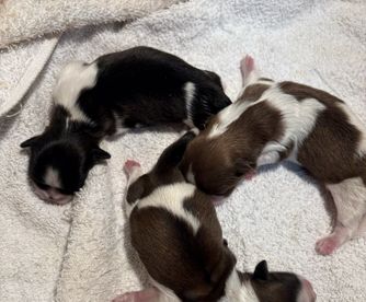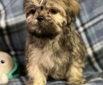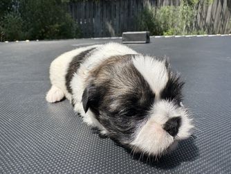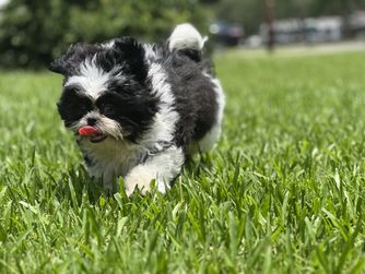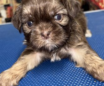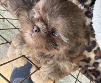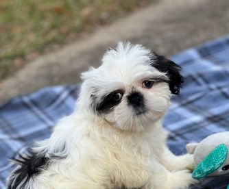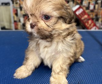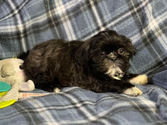 Shih Tzu puppies include black, liver, blue, gold, liver and white, gold and white, brindle and white, blue and white, black white and silver, black gold and white, black gold and silver, black and white, and brindle. Colors will vary depending on the parent dogs.