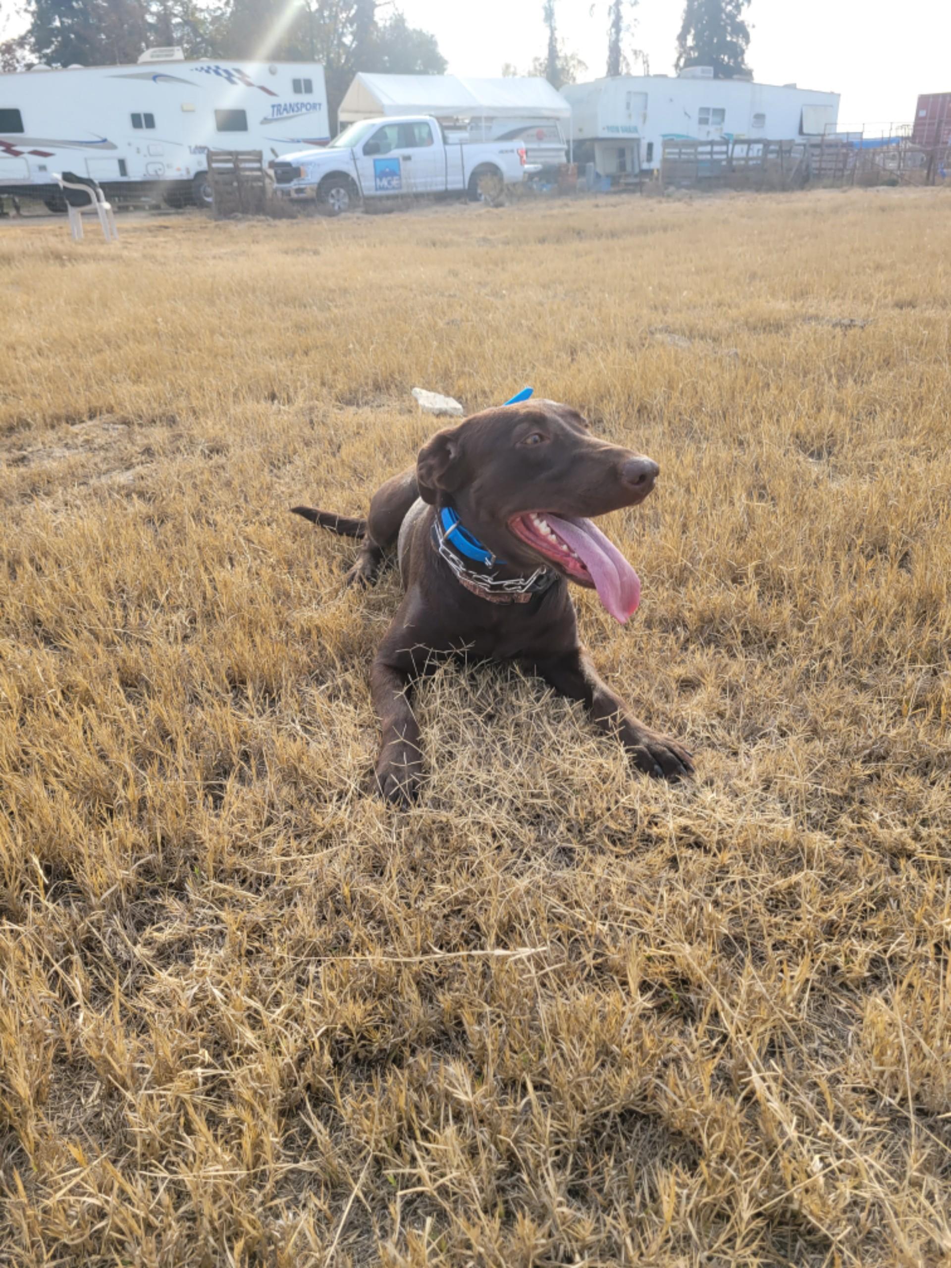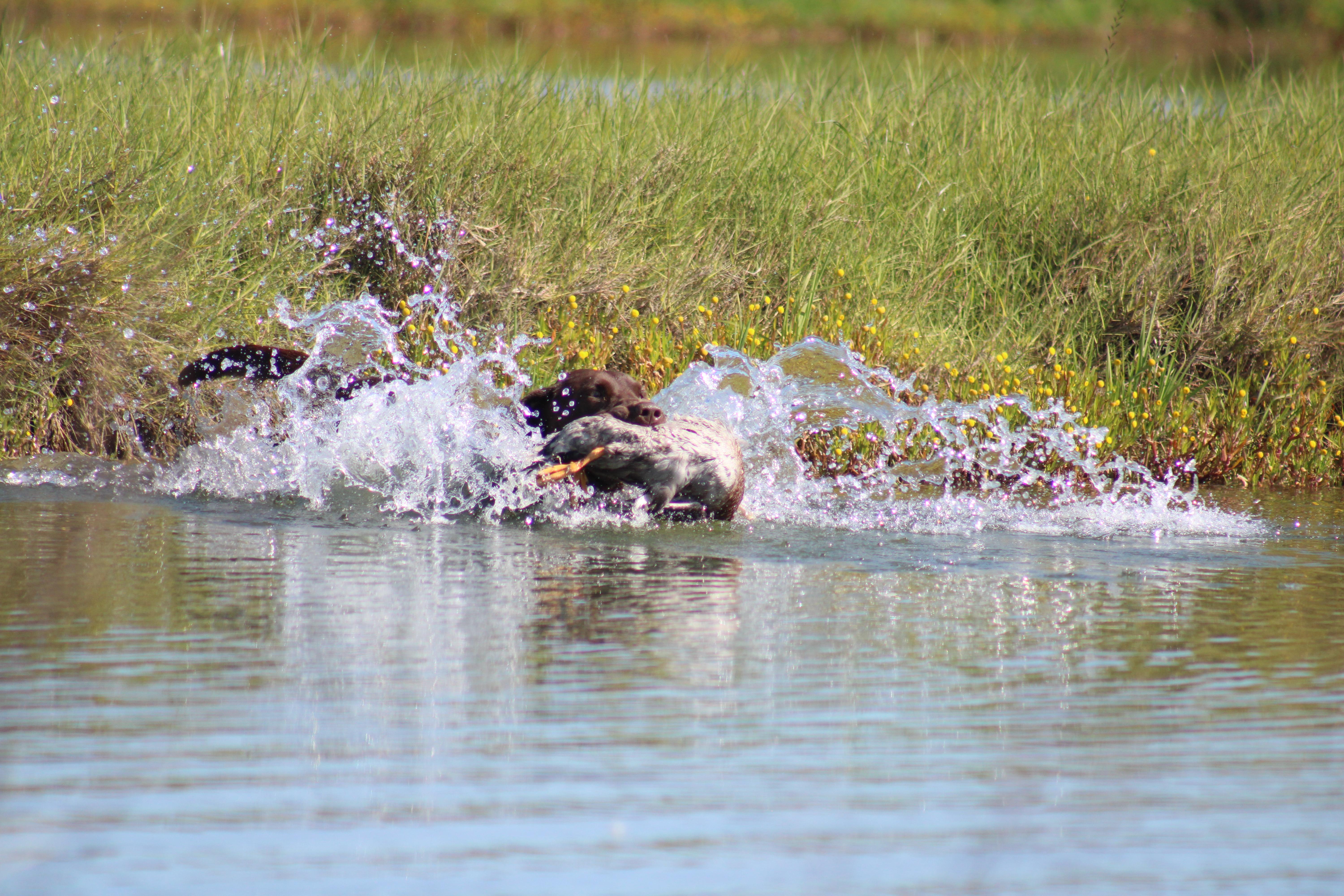 Ziva is our daughter's hunting companion. She has a high drive and is intense in the field with amazing focus. She represents the fifth generation of hunting companions born and raised at our home. She is a smaller build and produces intelligent pups with great drive.