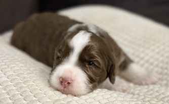 Roux is a female Australian Labradoodle. Carefully selected as a great representative of her breed, Katrina decided to make her part of their program. Katrina has passed Good Dog’s screening process, which involved a review of their breeding practices, environment, and the mental and physical health of their dogs.